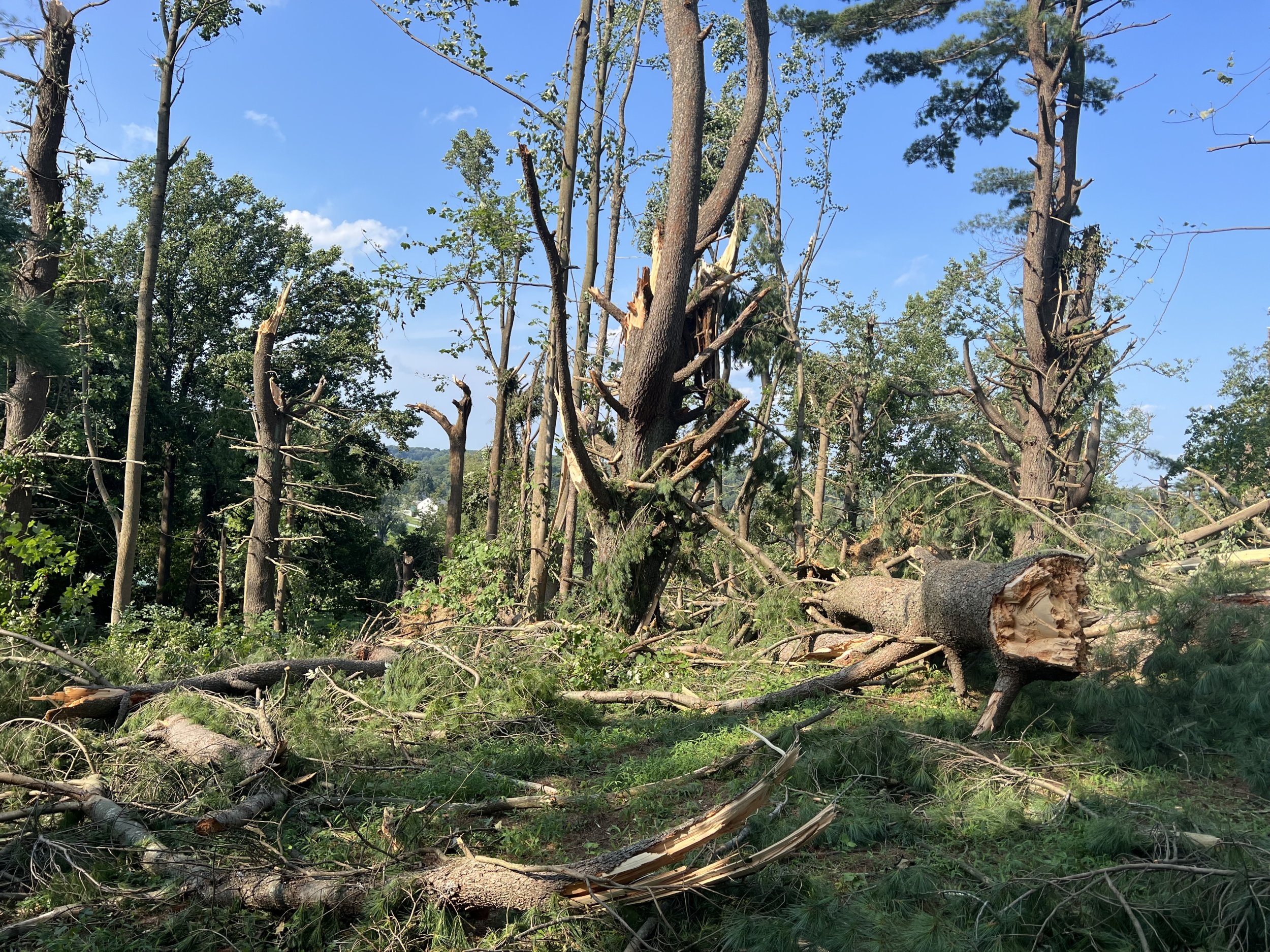 One of my farm customers bore the brunt of the damage. An estimated 300 medium-large trees blown over or snapped off like tooth picks.