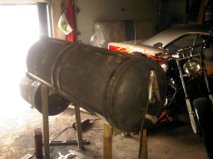 plan on rebuildng this in a few years that thin metal will rot out fast! Propane tanks are better the BIG ones not the little hand portable ones ...same issues to thin. Have built Quite a few pits once the project is done build a big fire and burn out the smelly stuff. Plus that thin metal is a tuff one to weld without blowing big holes.....have fun and enjoy the build.