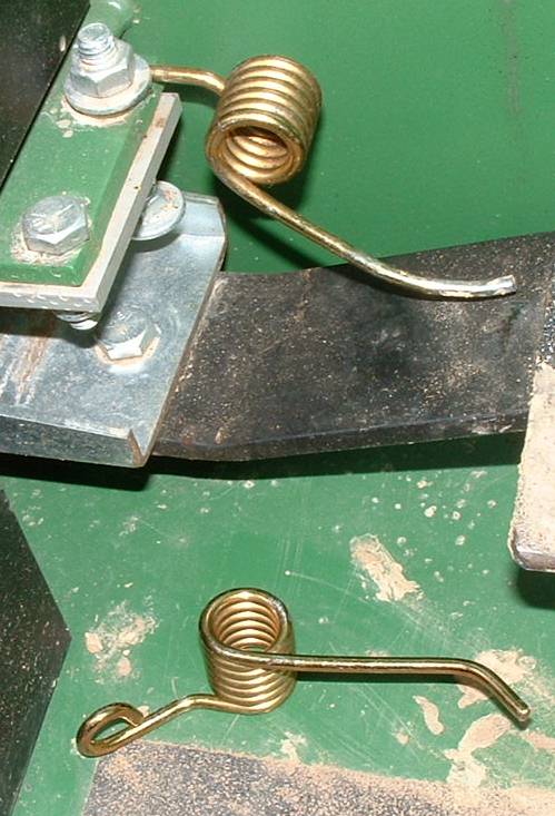 I wasn't really happy with the double compression springs provided by PT, so I got dethatcher springs from the mower parts section at Lowe's. I reversed the bend on the end of one and mounted it to make contact in the first few degrees of reverse pedal travel. It doesn't quite touch in the neutral position.