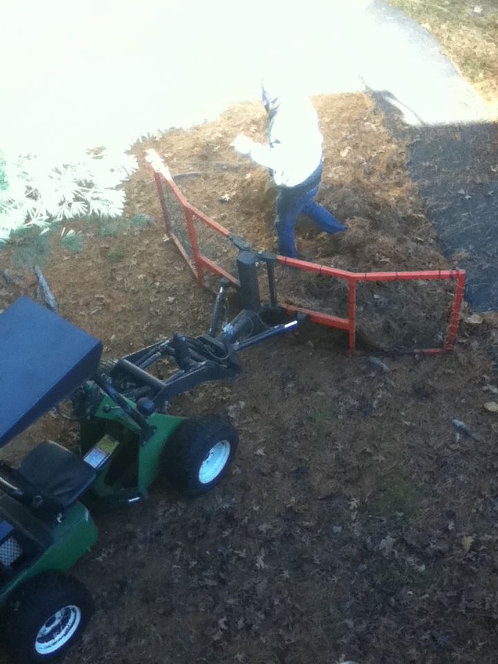 Here are a few pictures of a leaf grapple that I had a welder make for my pt425. We have miles of street side areas that we clean in the fall for a mobile home community, as well as a couple hundred of their small lots to clean and maintain. I replaced my Billy Goat 25hp leaf vacuum with this grapple setup this past fall and I find it to be a better solution. As opposed to the leaf vacuum, the grapple doesn't care if the leaves are wet, or if the leaves have sand, stones, and sticks mixed in. Also the PT425 allows us to pick up debris in people's back yards without tarping. We used basically the same hydraulic setup as power trac's tree hugger attachment. As for the mesh it is just chain link fencing. I have posted a few videos on you tube of it in action. Just search for "PT425 Leaf Grapple"View attachment 252019