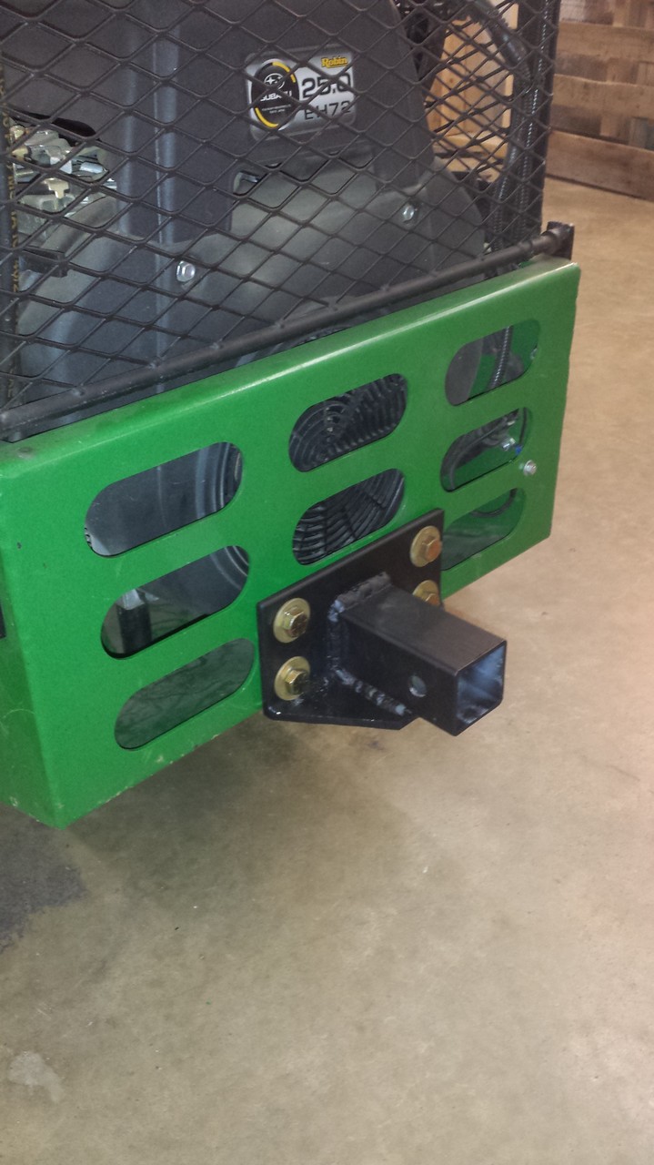 It is a standard size 2x2" hitch, so could put a regular ball in it if I needed to pull a trailer, or have a hook if I need to tie the machine down when I move it.