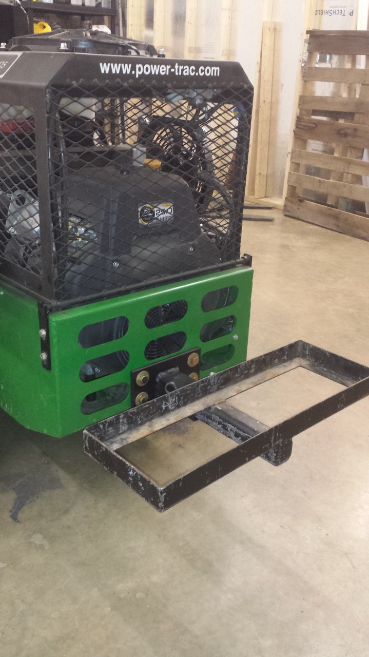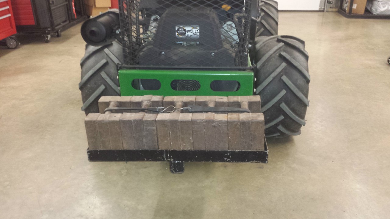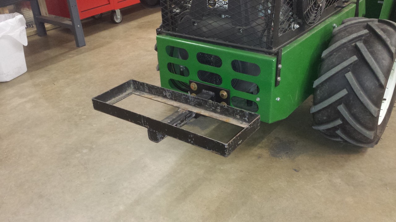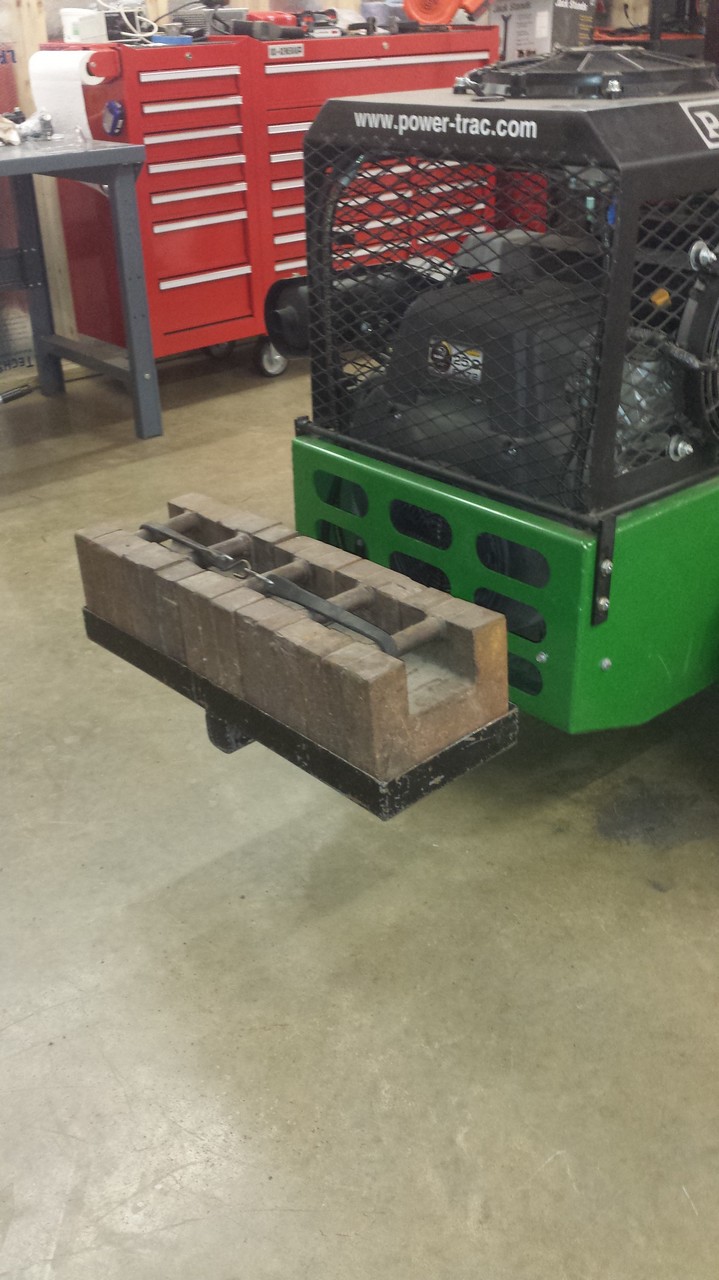 This is Weight bracket and hitch I made for the back of the PT 425. I wanted to try it in the Winter with Snow, to see if it might help not having to chain up. These were weights I used to use on the back of my John Deere 318 and have a total weight of 250 pounds.