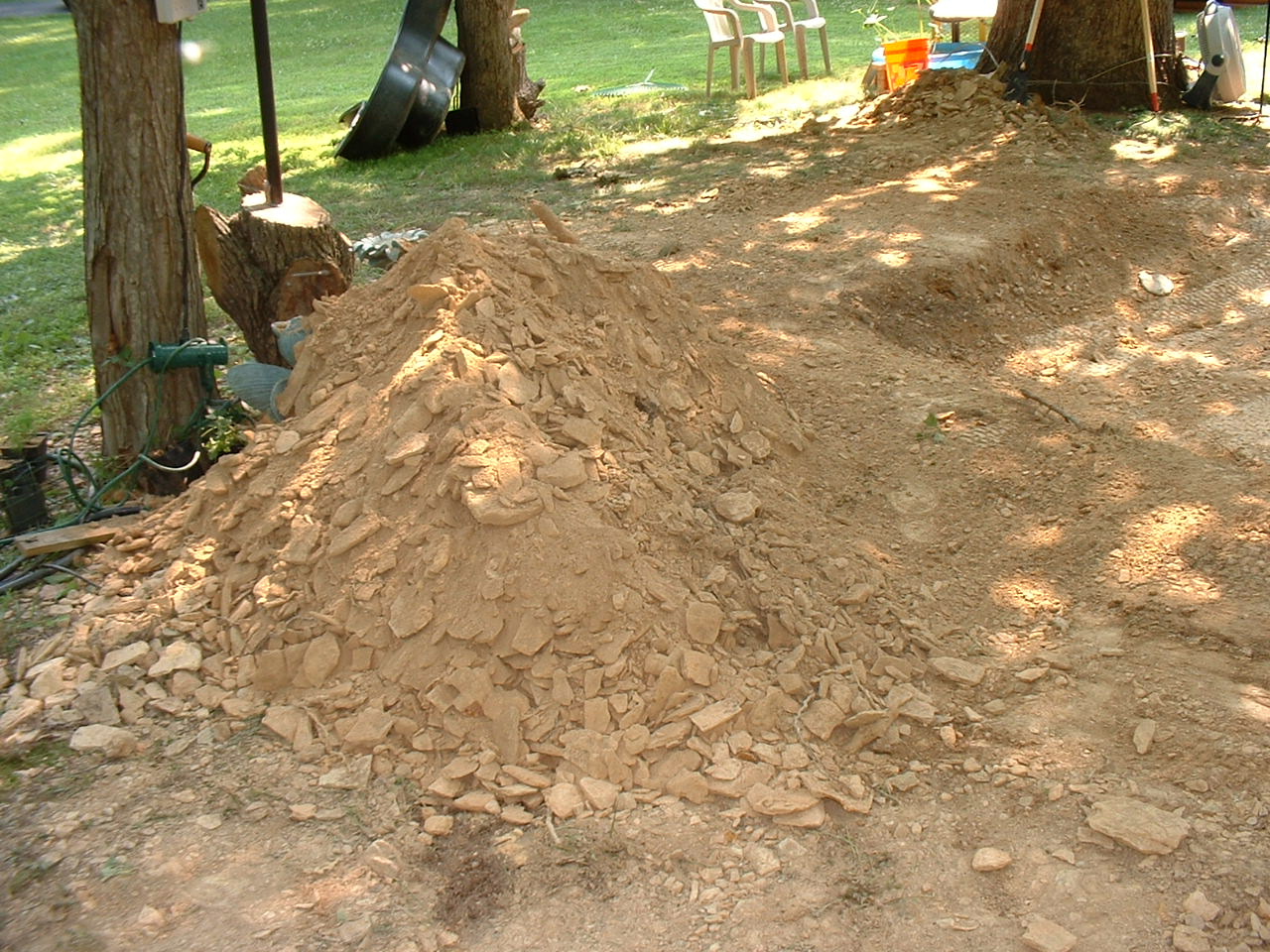 For those interested, here are more pictures to add to yesterdays on page 8 of the pond work I'm doing, using two plug in attachments. The first are the two mountains of shale dirt I removed. Then filling in around the pond area where I had to make a PT dirt ramp to access the hole. The last is my cooling station, cooling the PT every 45 minutes. By the way I found my septic tank in the process. :rolleyes: