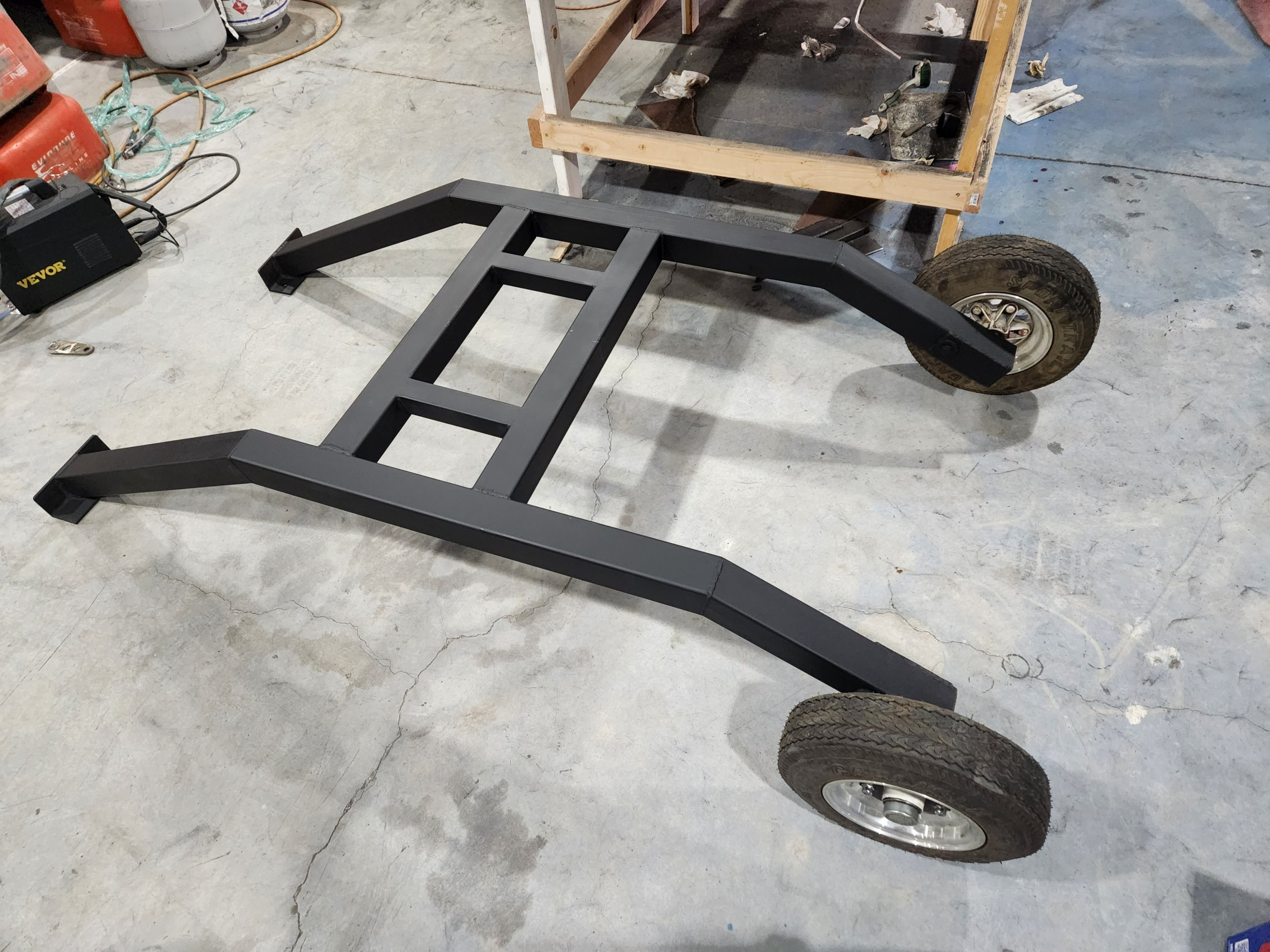 Tested it with the 'jump up and down on it' method. so far so good. Not to happy with the butt welds on the legs, ill add in a backing plate soon enough.