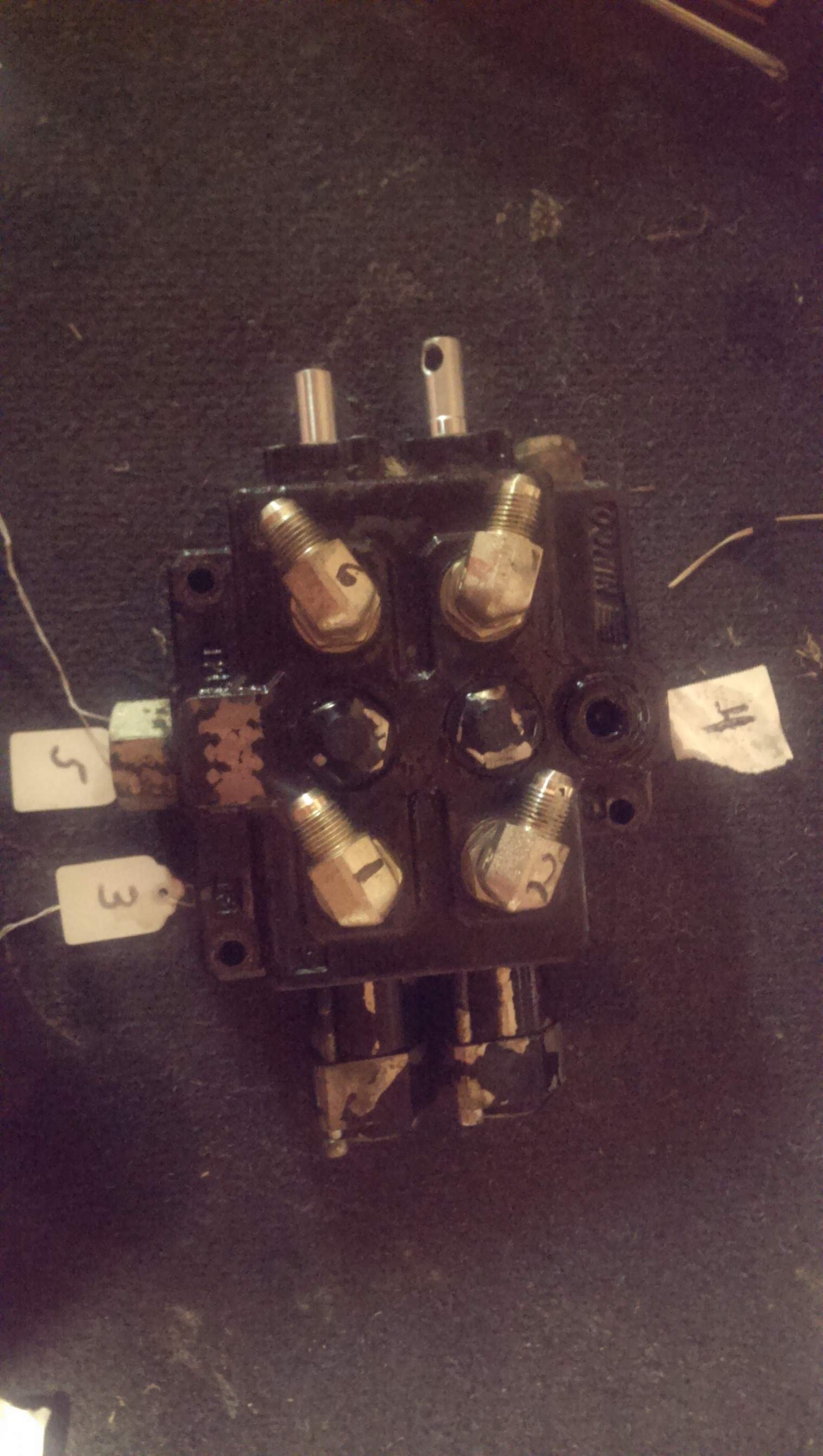 The FEL tilt function started having issues, I discover a break inside the control valve, the part that controls the spring function. The control valve is a Nimco these are the numbers on the metal label.