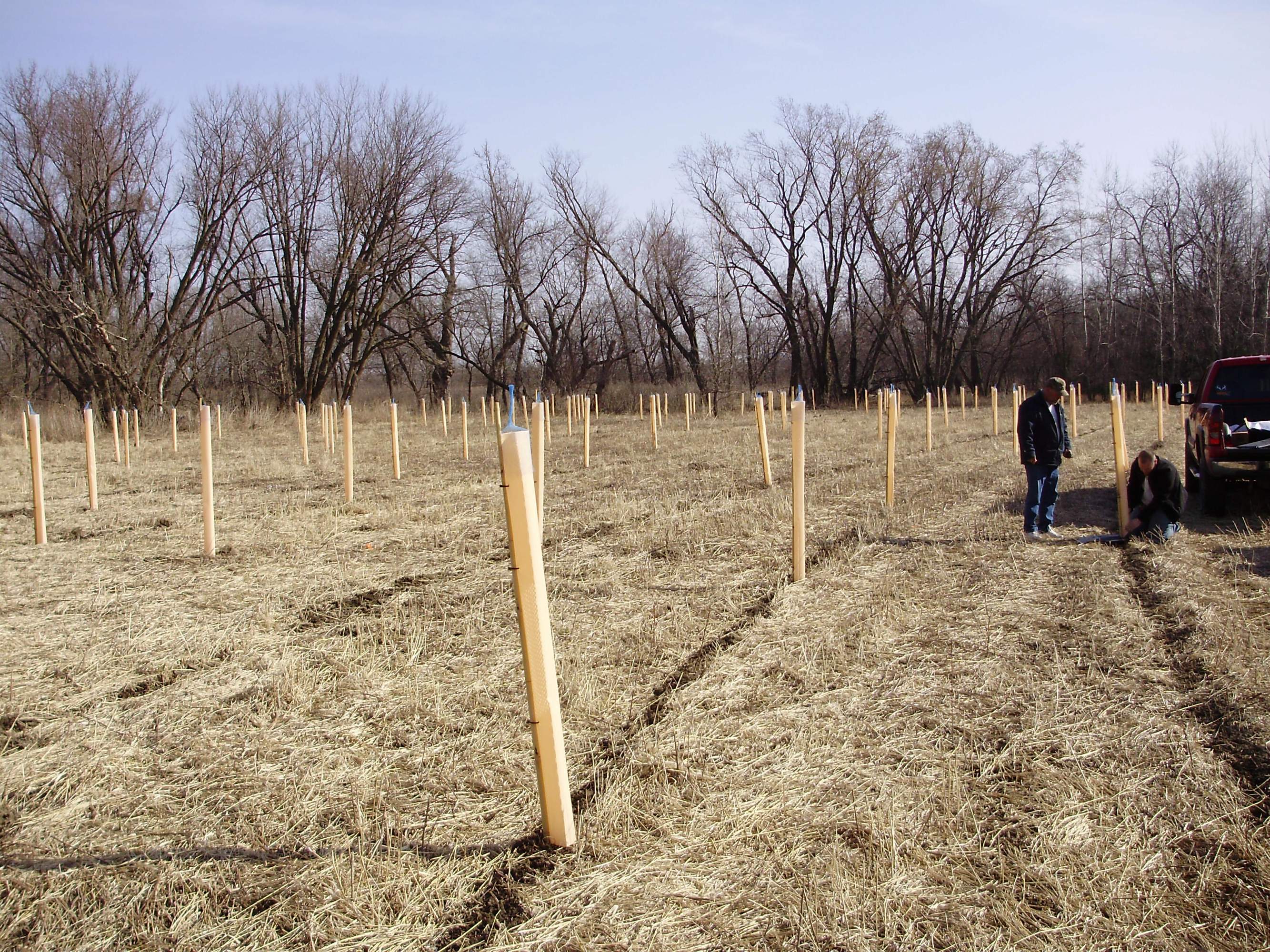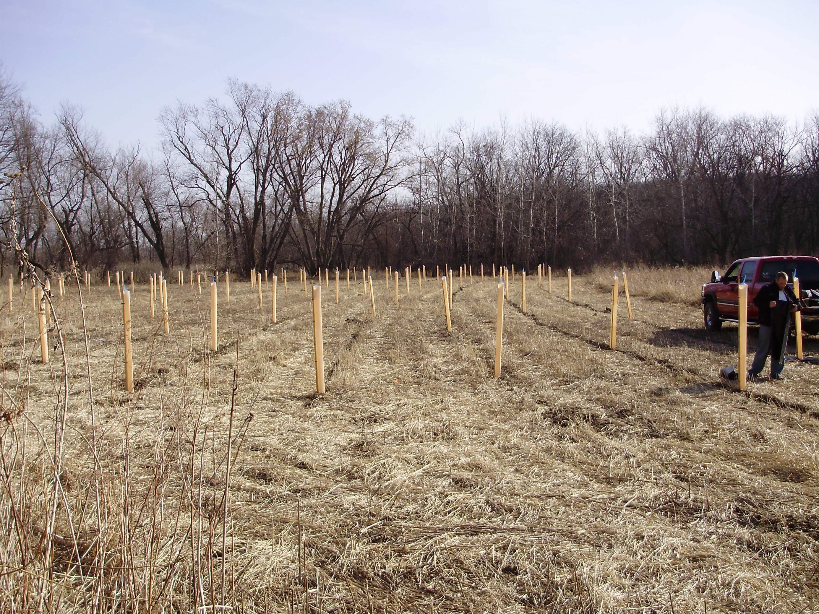 The first thing I did after closing on my property, Sept. 2009 was go down to the bottom ground to check out the land. It had not been mowed and the weeds and brush were as high as my chest. The previous owner had obviously not mowed and taken care of the trees. I looked around but I couldn't tell where the young trees were planted. some of the weeds looked like they might be trees, but I was not sure. So I called the county forester whose job it was to look after such projects for the FSA (Farm Service Agency) and see if he could help find the trees.
