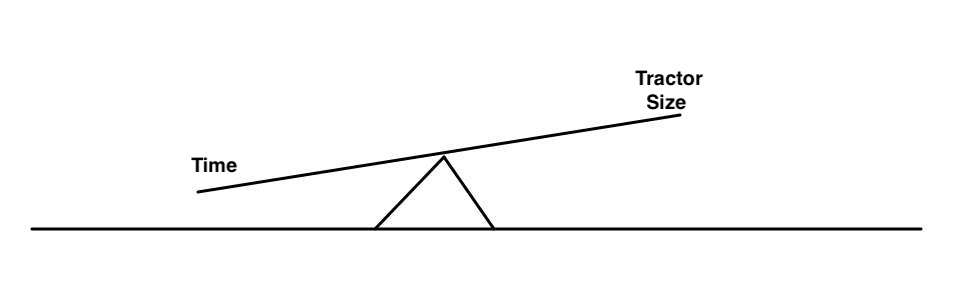 I originally bought a 25 HP tractor. It couldn't do the work. I upgraded to the same tractor, but 40 HP engine and now I can do the work in medium range at roughly 5 MPH or so and it's much nicer.