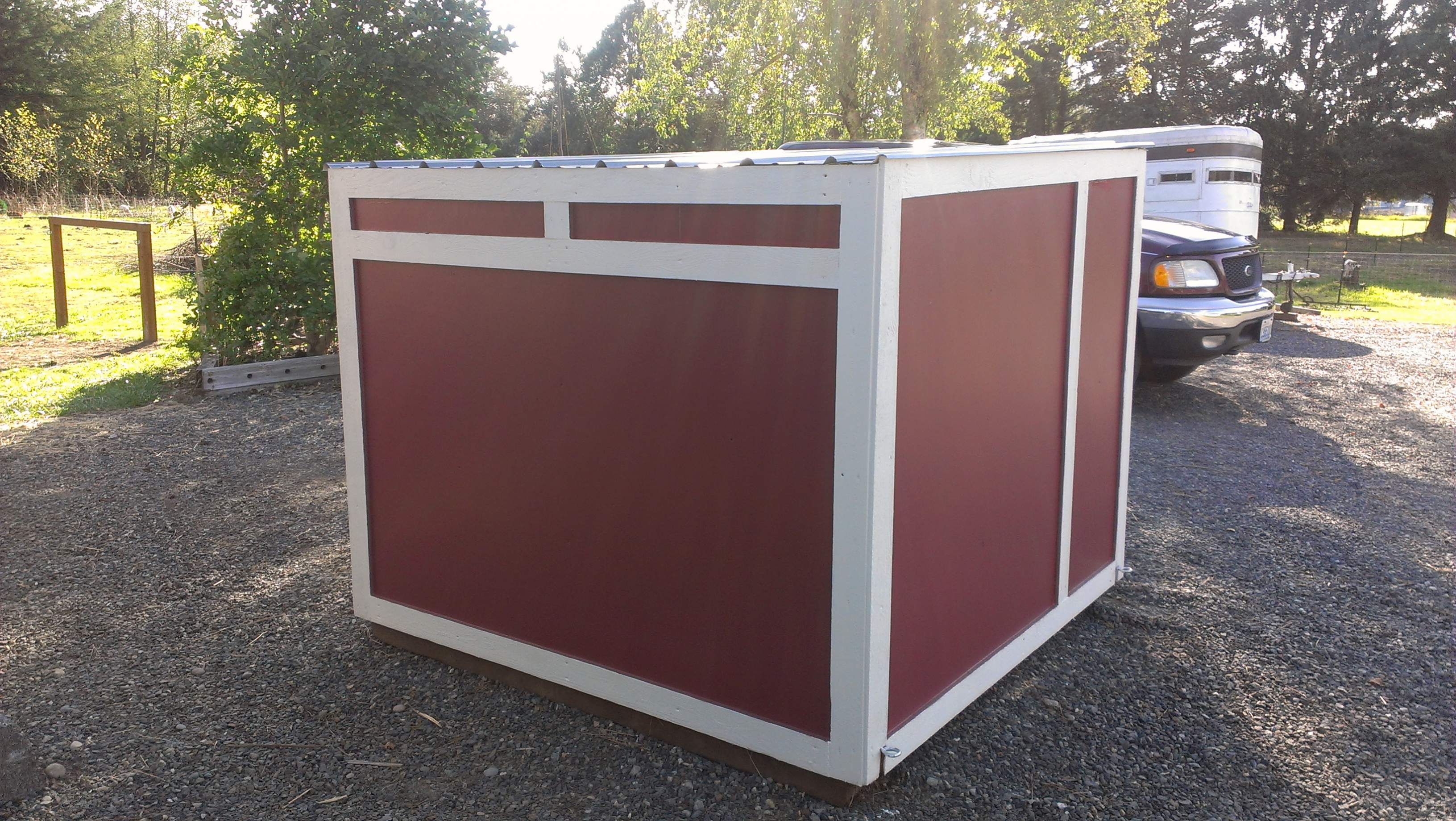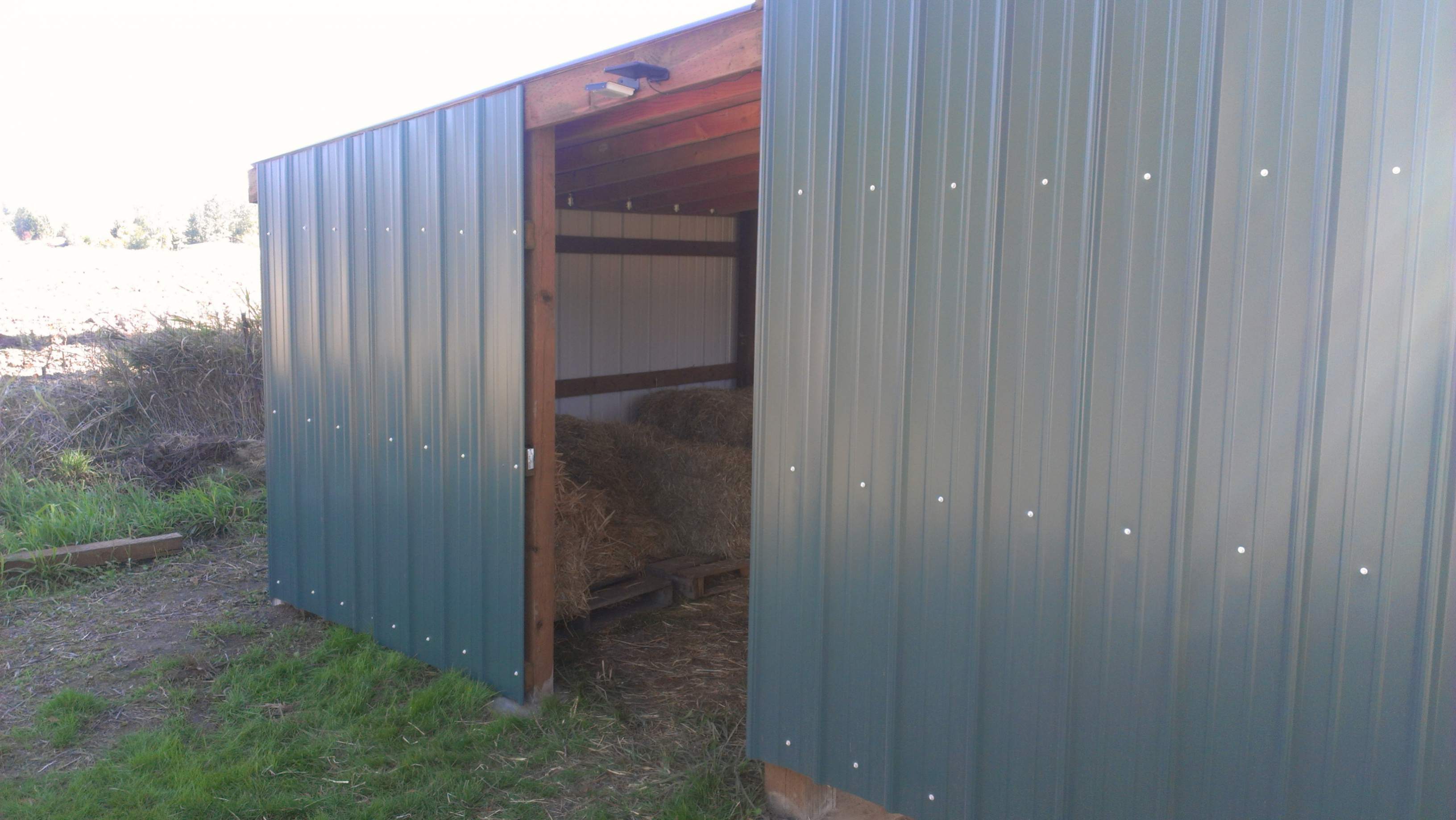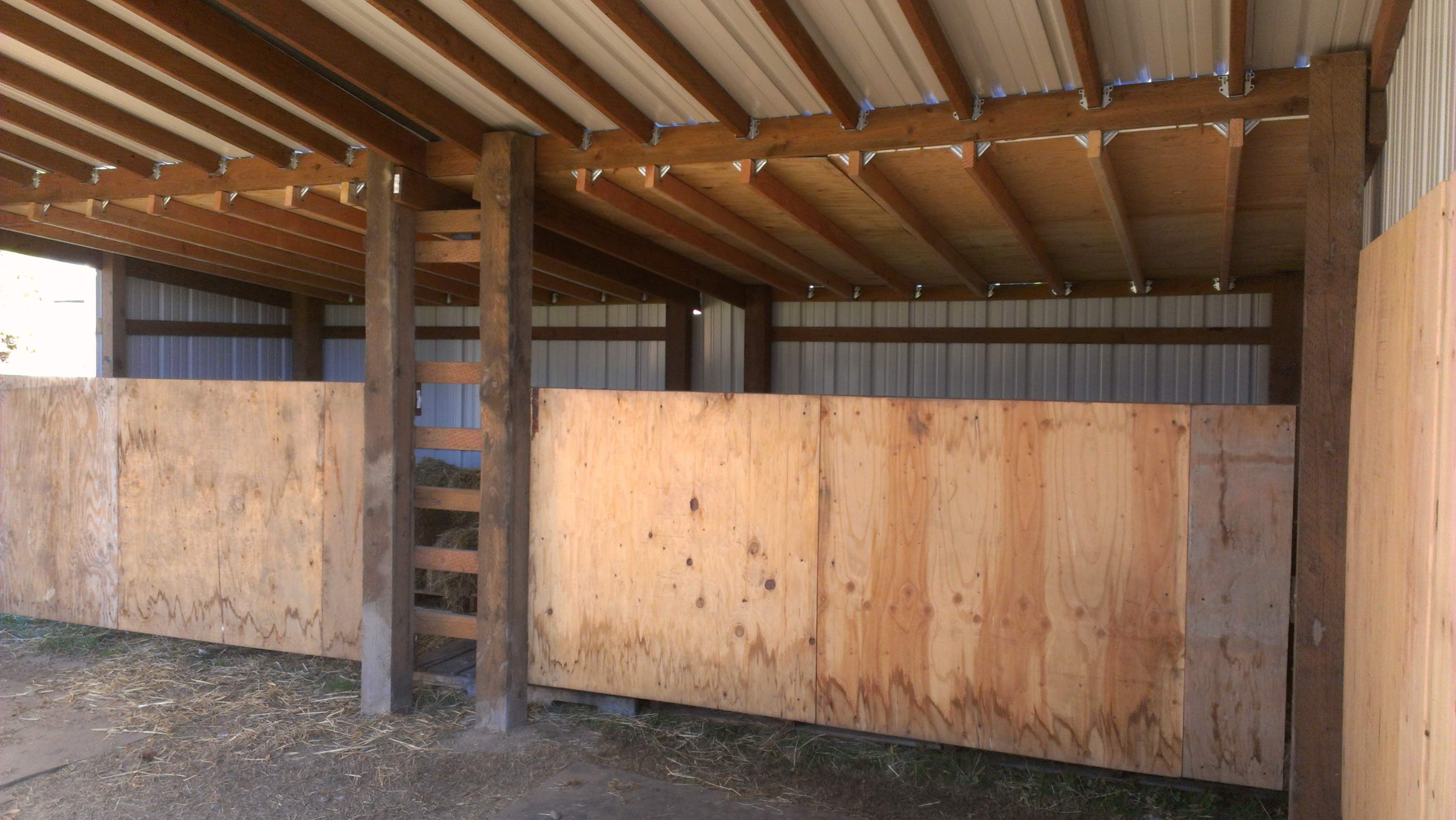 I did that to avoid having to get a permit with final inspection. In my county, you're only aloud 120sq ft building for a horse shelter, without a permit. So I made two next to each other with the space between to add square footage. I'm just not going to add a wall to divide them, and only join them with the metal roofing material. The lean-to will be considered AG, and doesn't need a permit. For some horse hating reason, horses aren't considered AG in my county.