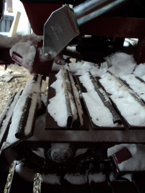 The second modification was to weld additional plates onto the track for traction. Right now I added a 3/4" x 1/4" plate to every other track plate to give me better snow traction. This addition really helped in the snow.