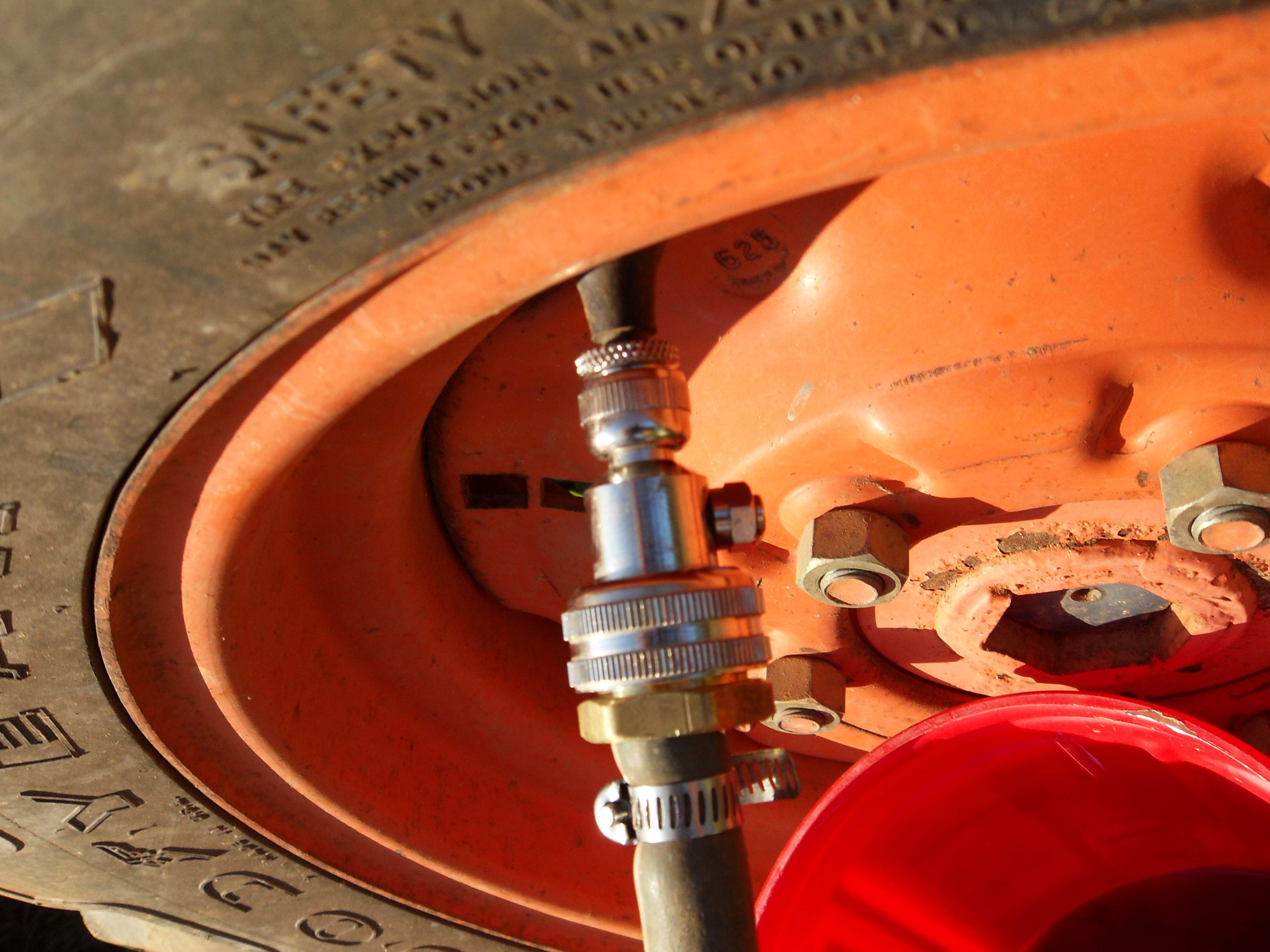 The last pic is for the folks that haven"t seen one of the fill adapters before. I bought this one years ago. The little hex head knob on the side is where you back it out to release the air that builds up inside the tire. Oh by the way, I didn"t mix water with the WWF, I used it full strength. -20 degrees below formula. zman:)