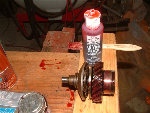 The crankshaft and timing gears coated with Permatex assembly lube. Ditto the gear on the governor.