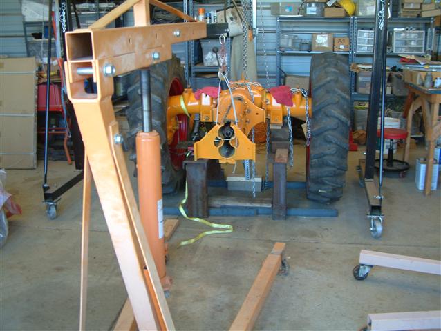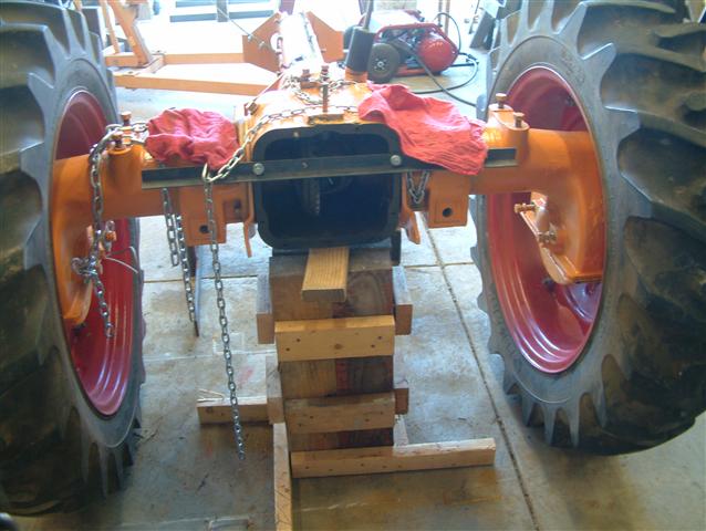 With those bull gear axles and no engine weight on the front, you need to support the rear of the tractor to keep it from doing a back flip.