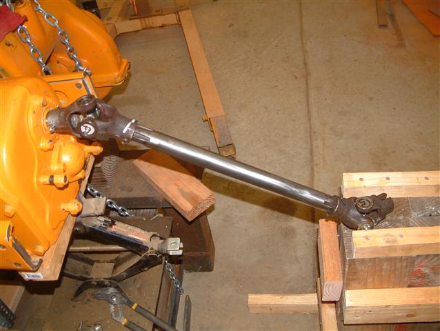 Then the 24" long propeller shaft onto the transmission input shaft. Held on with stout cotter pins. The new U-joints have grease zerks unlike the old ones that were permanently lubed.