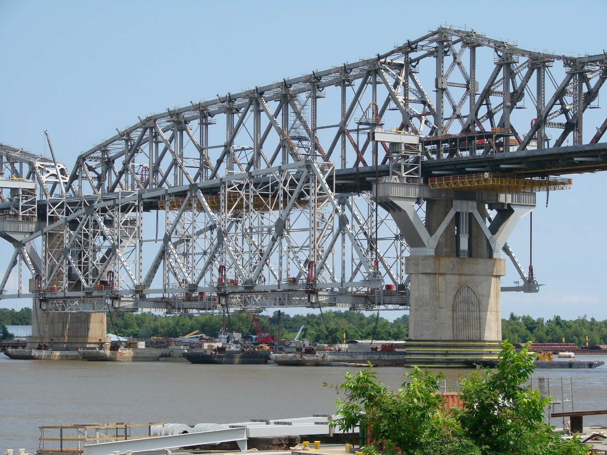 They started the "Big Lift" last night. They moved the section under the bridge and hooked the cables up to it and started lifting it up off the barges.