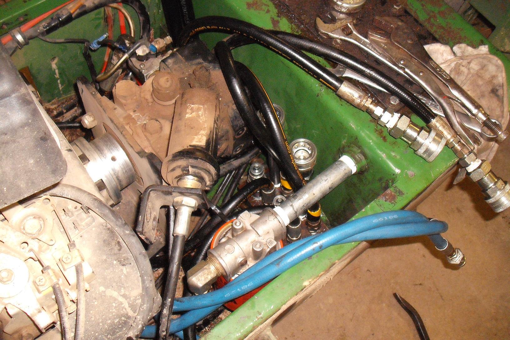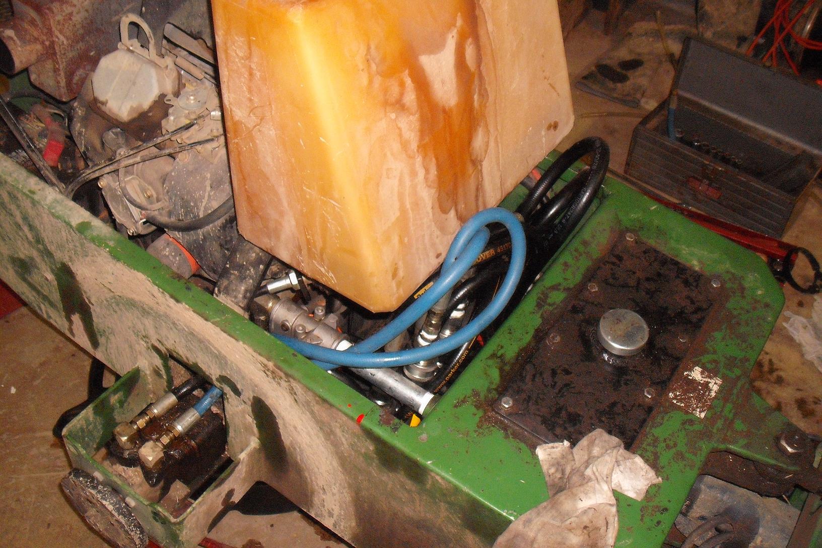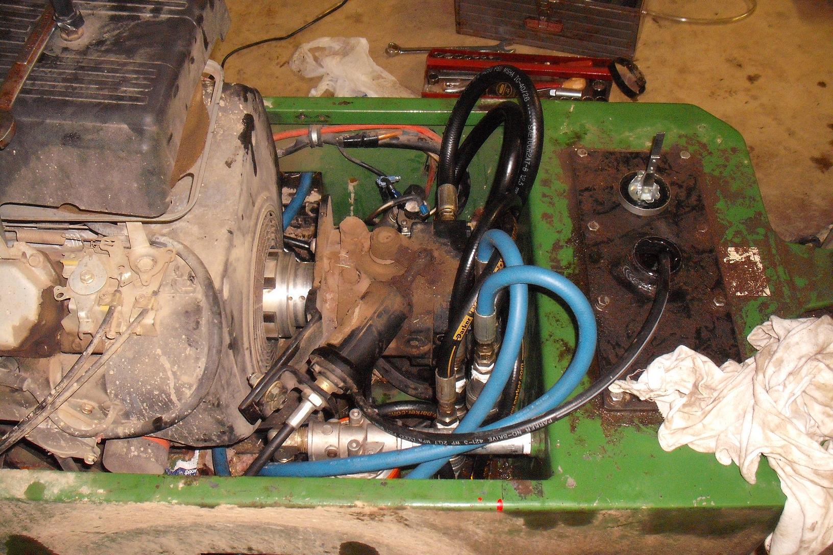 Ok the work is done but I haven稚 tried it out enough to comment. I went ahead change the engine oil and filter and the Hyd filter. AS it looks now to change the hyd filter I need to remove the unit. It痴 not that much trouble. I will post again after I have tried the tractor out more. As it is when I finished and pulled the Pt back into place in the shop I ran it up again the block wall gave it peddle till one of the front tires spin. Also I can tell already that it is defiantly geared much slower. Some of the Hoses could be made to a better more compact length but if I fill this gear is useful I plan to go the solenoid route anyway. I will do a neater more compact job then.