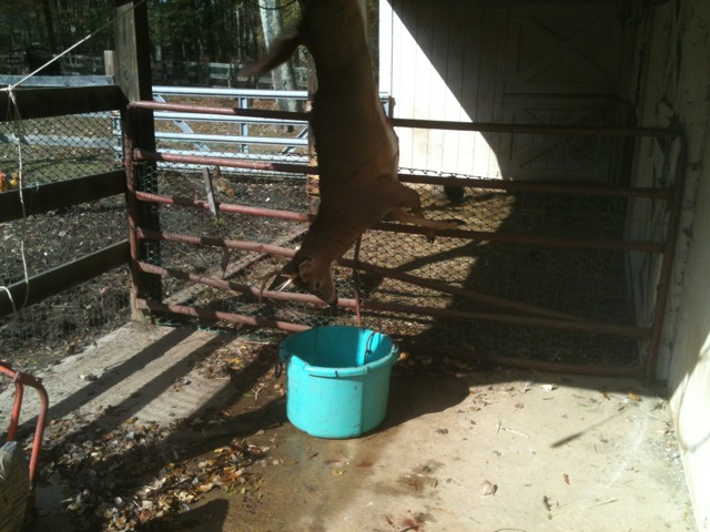 I came out with the black side still down where it belongs but it was more his accidental and luck than anything else. It was 5:30AM, doe goes from right to left in front of me, before I decided to slow down or whatnot, there he was. Hit him with the headlight and right shin. I even expected him to be gonne, it felt such a light hit. But he was right there, dead in the ditch. On top of the headlight the #4 spark plug cap was broken, went back home on 3 - was only a mile or so.