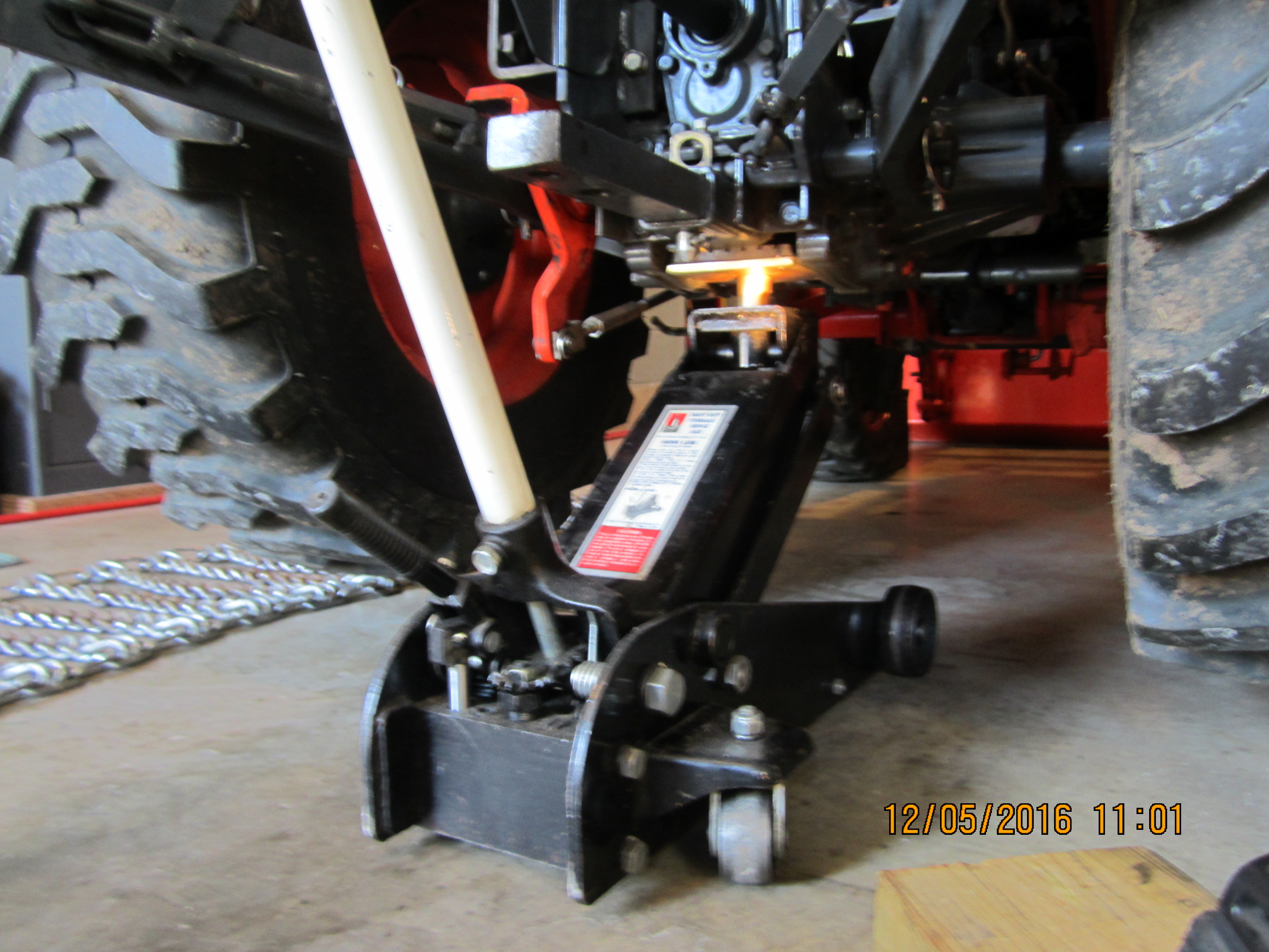 This is a great suggestion. I've used rear chains for 40 years. First a Case VAC, Deere 850, and now a Kioti 2610. I have never installed chains as fast as I did today using your method in the first post. Took me half the time, and much less grunting and skinned knuckles .
