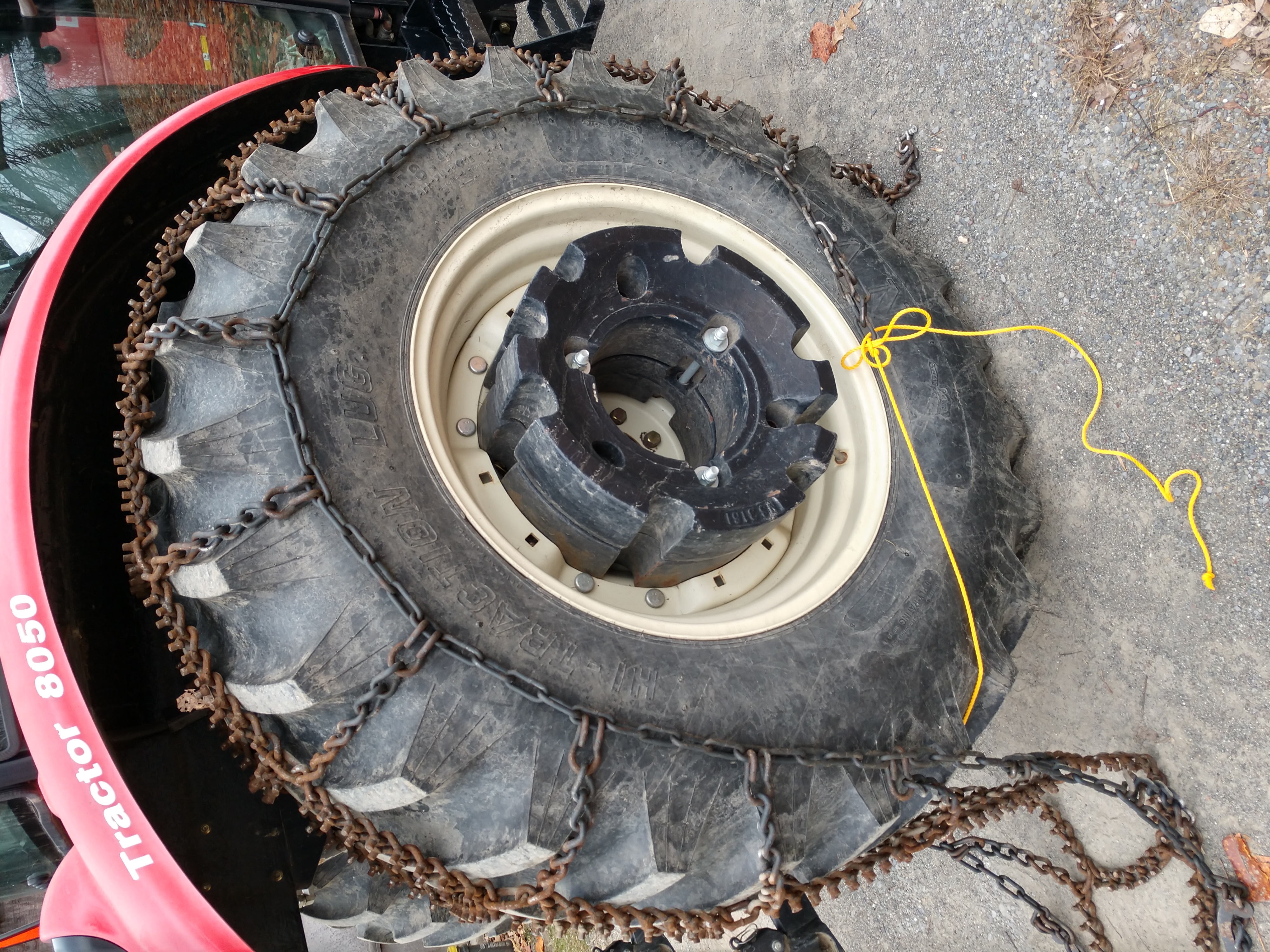 When I had a smaller tractor - some years I would mount my big, 'ol, nasty & heavy V- bar tractor chains. I always jacked up the tire and pulled, grunted and swore like a pirate getting them on - getting them straight - getting them reasonably tight.