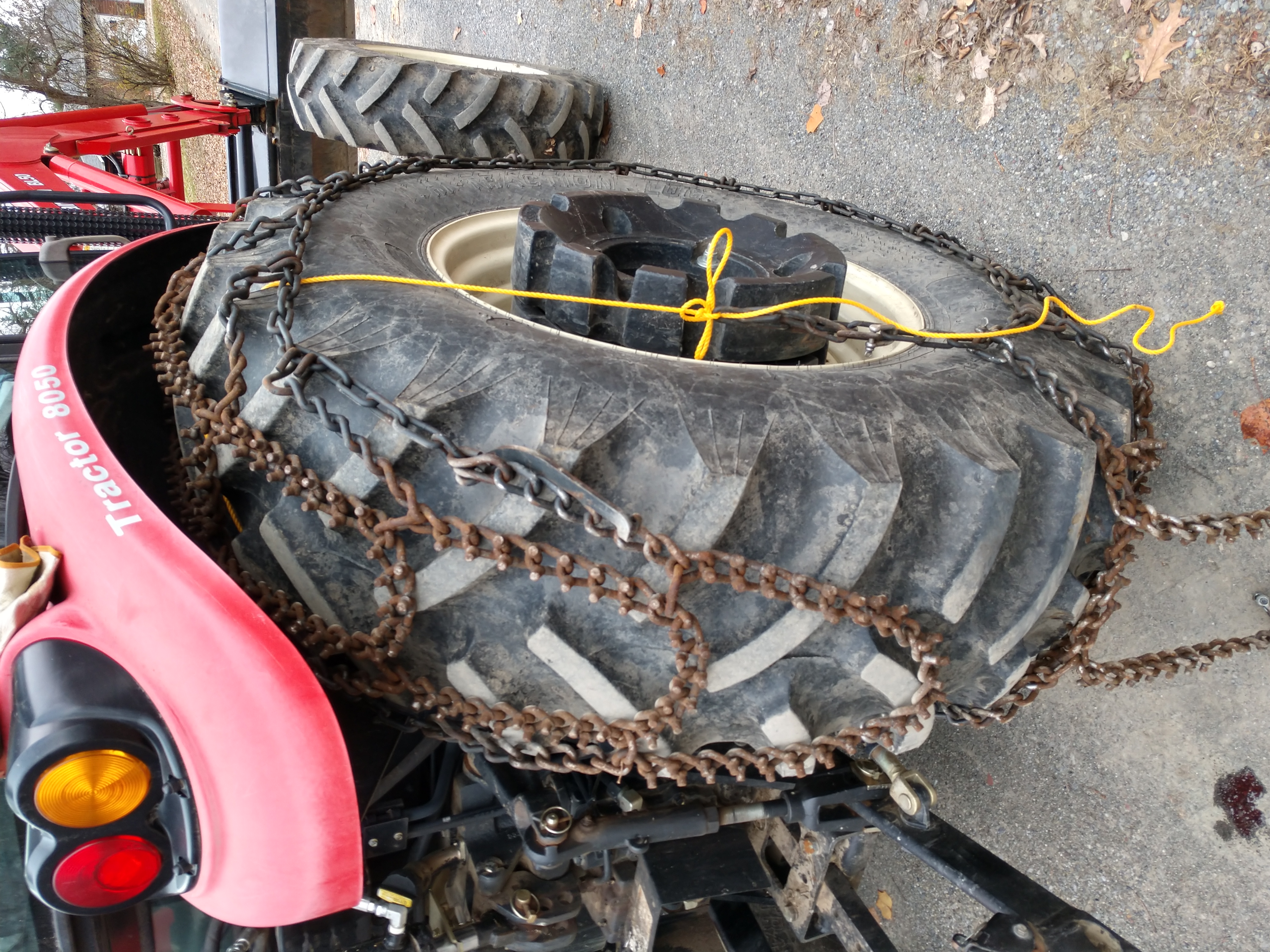 I put chains on one tractor yesterday, there are lots of ways to mount chains I thought I would share the easiest way I have found to do so.