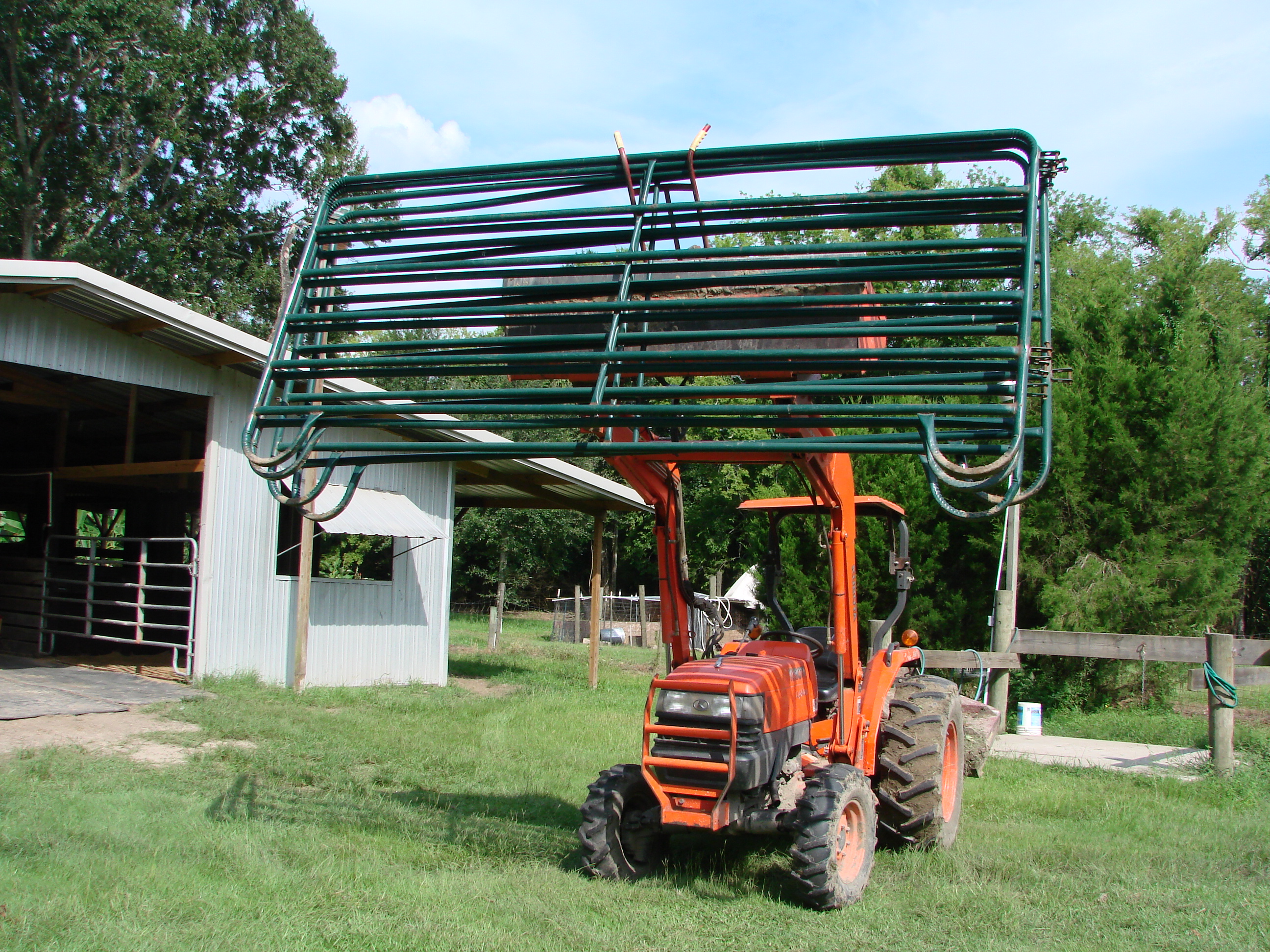 I had to move a dozen livestock panels about 500' across a muddy pasture. Since I had no forks and wanted to do it the easiest way, I improvised. A little ingenuity goes a long way. I was able to lift 6 at a time so only had to make 2 trips and could load and unload them automatically.