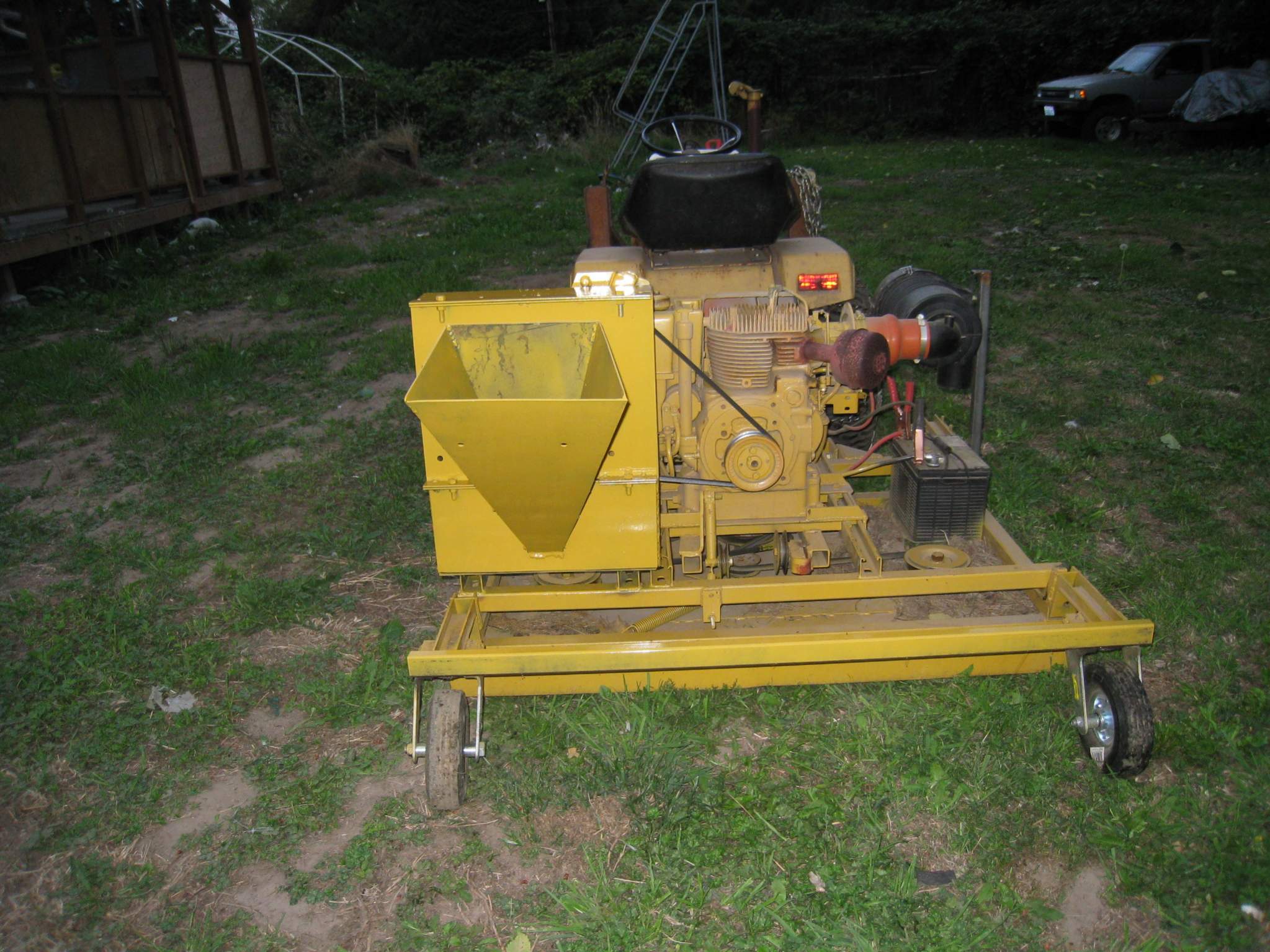 Well I finally changed out the wheels to solid rubber and it cured all the problems. I've been working on the Chipper addition and the only thing remaining is to go back and finish some welding on the Chute and a few small areas. Rain is on it's way here this weekend so I reluctantly threw on some paint to keep the rust down until I finish the welding. Oh I did run a bunch of DF branches and Blackberry vines through it. Works great. Some of the Branches were 1" and above. Didn't even slow it down. Keep in mind this was designed for light duty. I'll post some final pics once I finish it. I like this multi-purpose machine thing. I'm thinking the next accessory will be a 1/2 scale Buck Saw. IMG_2064.jpg