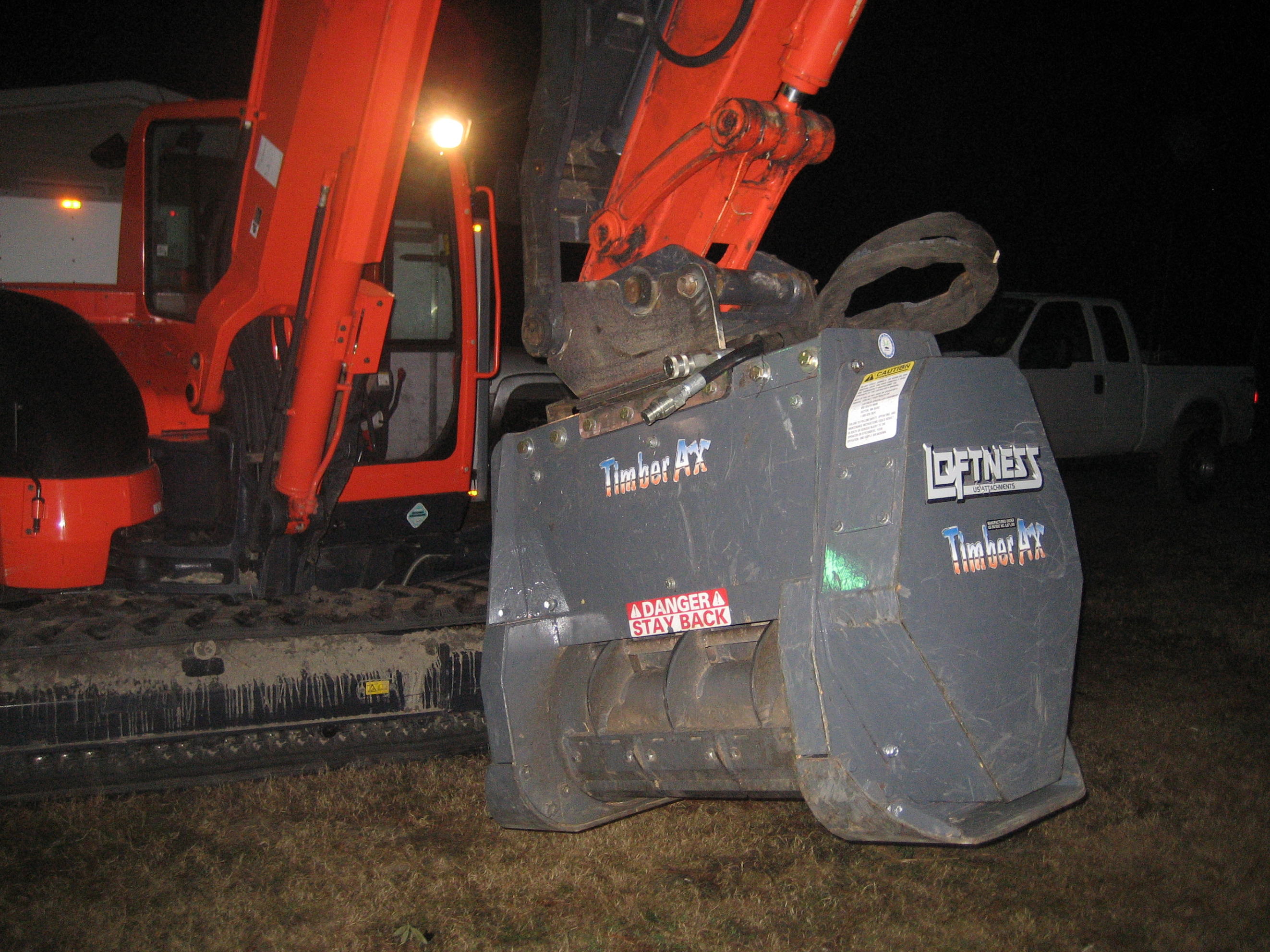 But today, I had the oportunity to run a prototype Loftness Timber Axe made for the Excavator. WOW.......