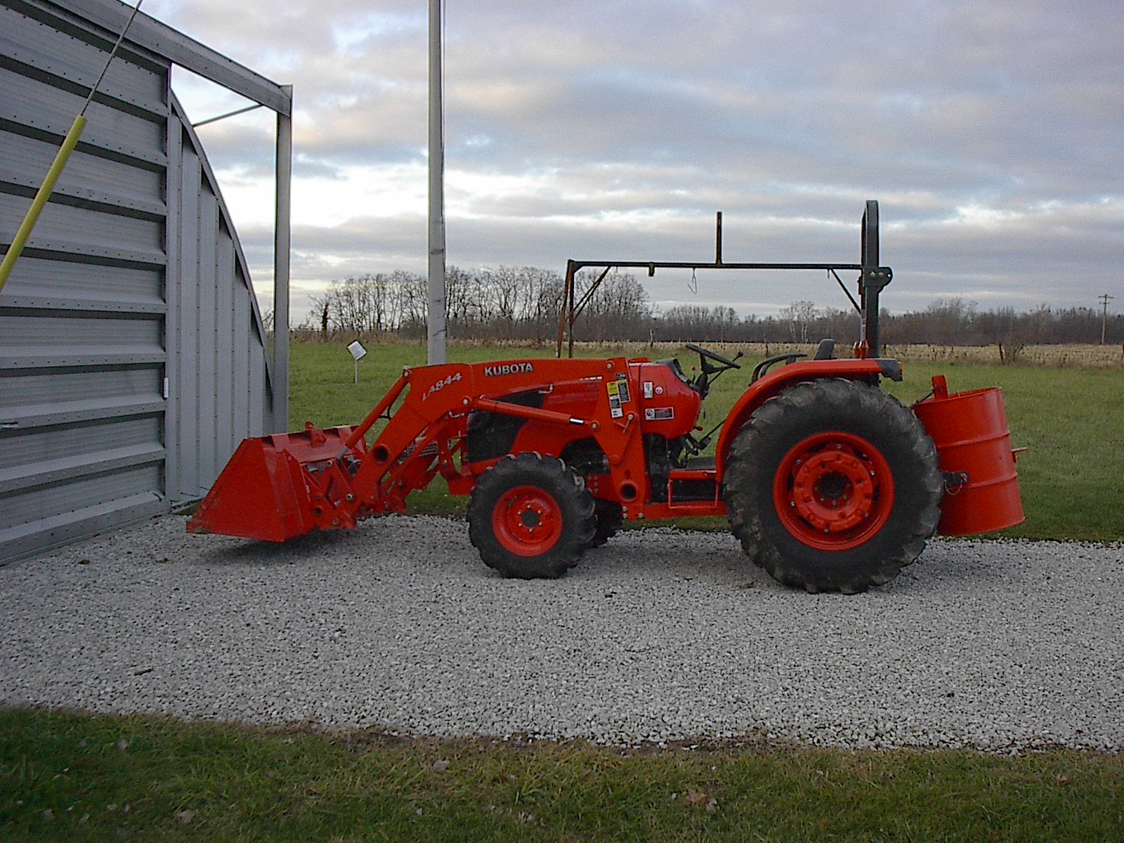 The smaller Kubotas are pretty light in the rear. On a tractor that size you need 1) fluid filled tires, 2) wheel weights and 3) extra ballast on the rear to really get full use out of the loader. IMO Kubota puts a little too much loader on some of their models.
