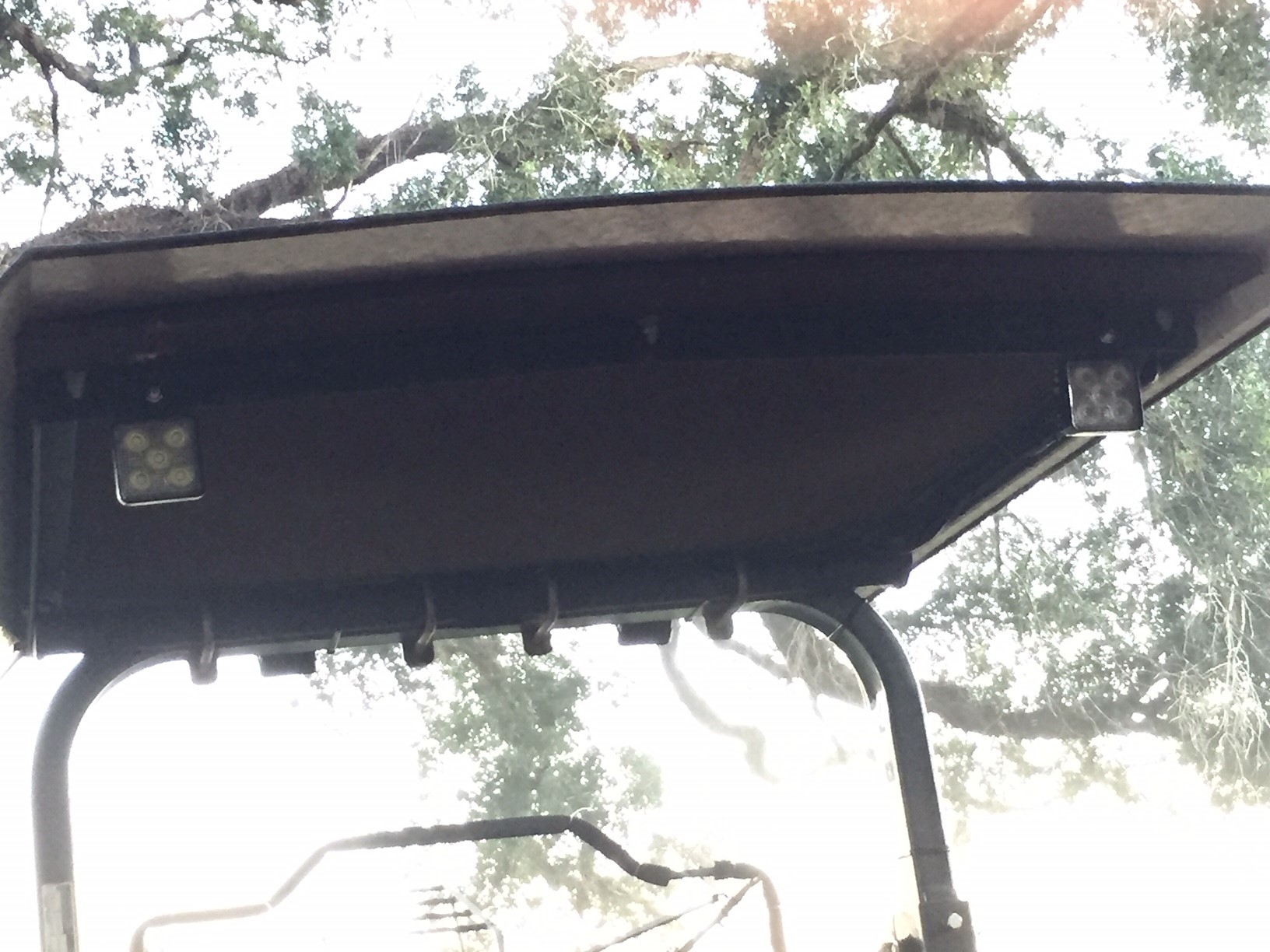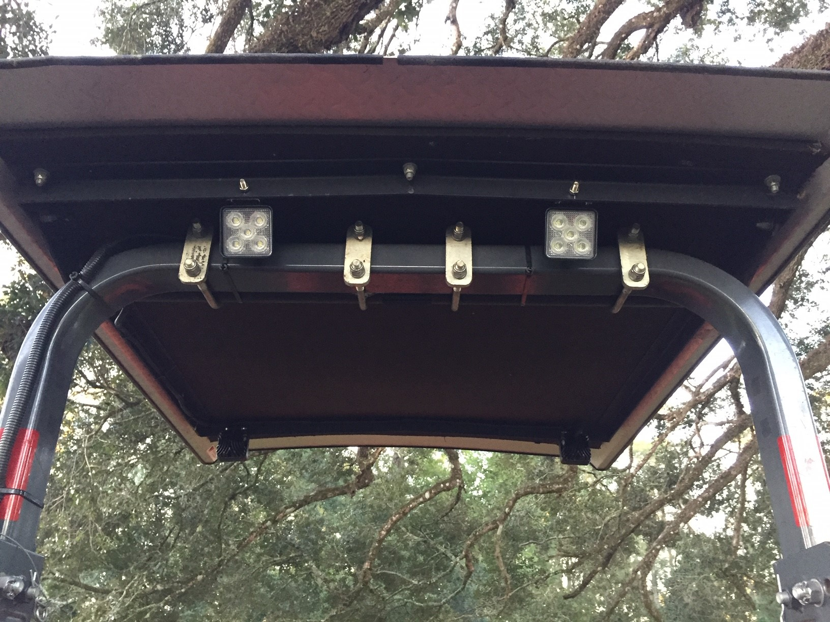 Due to the low current draw I was able to make use of the existing 15A work light circuit on the MX5400 and power both Front and Rear lights thru 2 SPST switches with no need for relays. Lights were mounted to the angle iron frame of the canopy and are very solid. Total cost for Lights, switches and waterproof switch covers was less than $60. I had all the necessary wire and flex-loom.