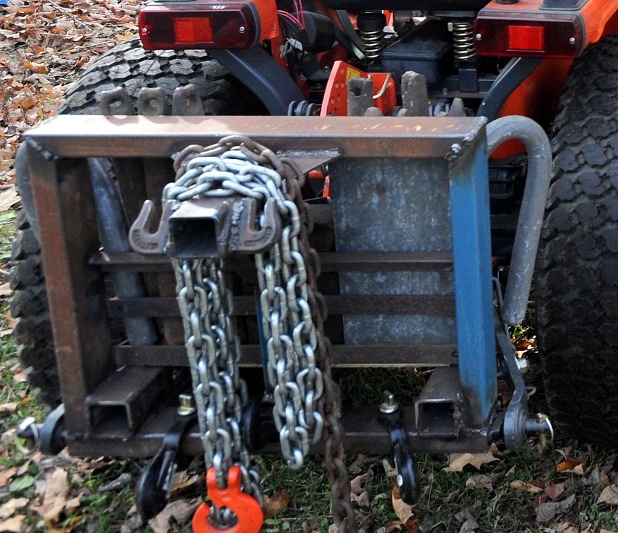 This is what I built last Summer. Hauls trailers, pulls logs and it serves as a weight box as well. I can add 600lbs of ballast on the 3ph that is including the weight of the contraption.