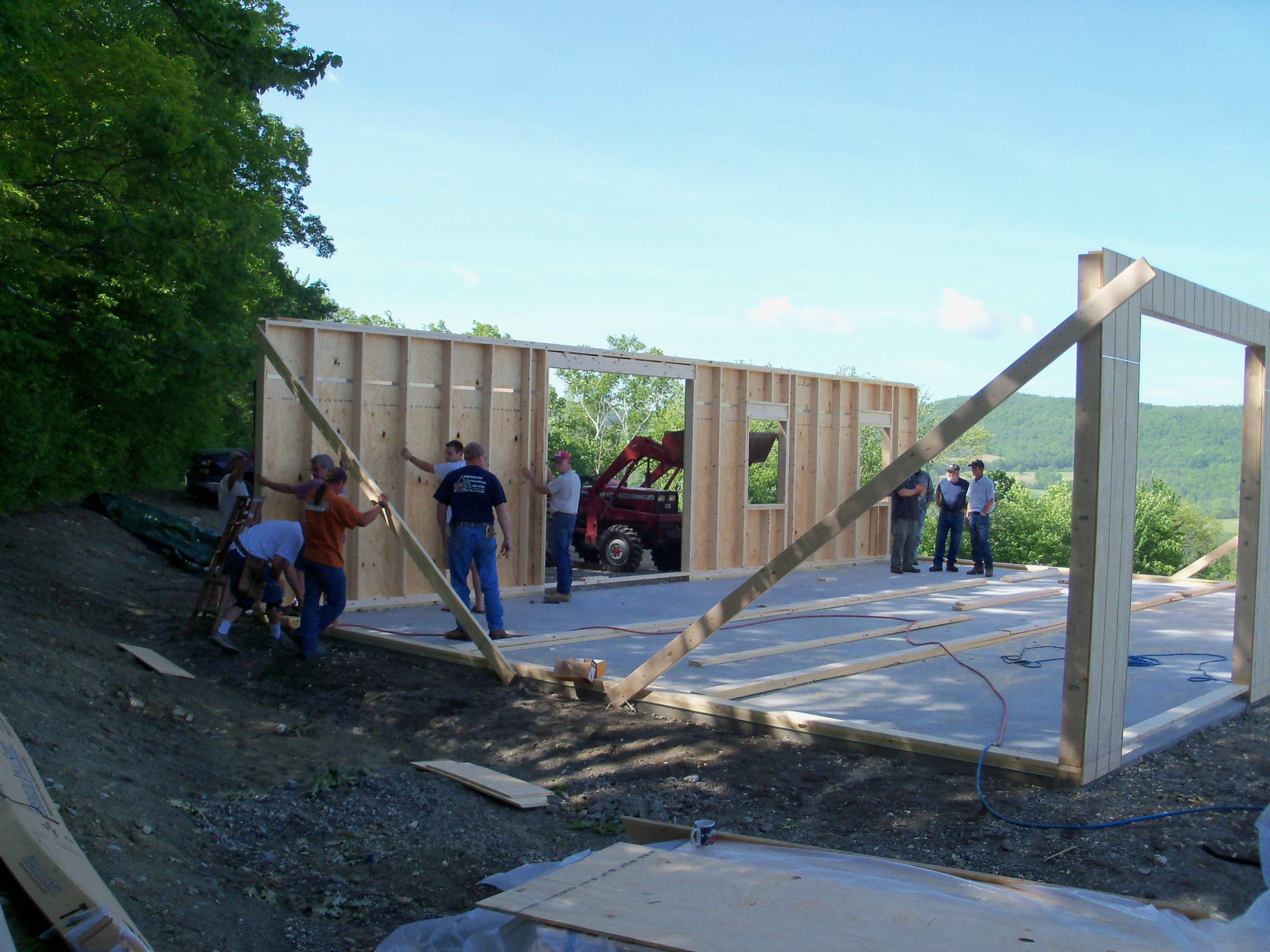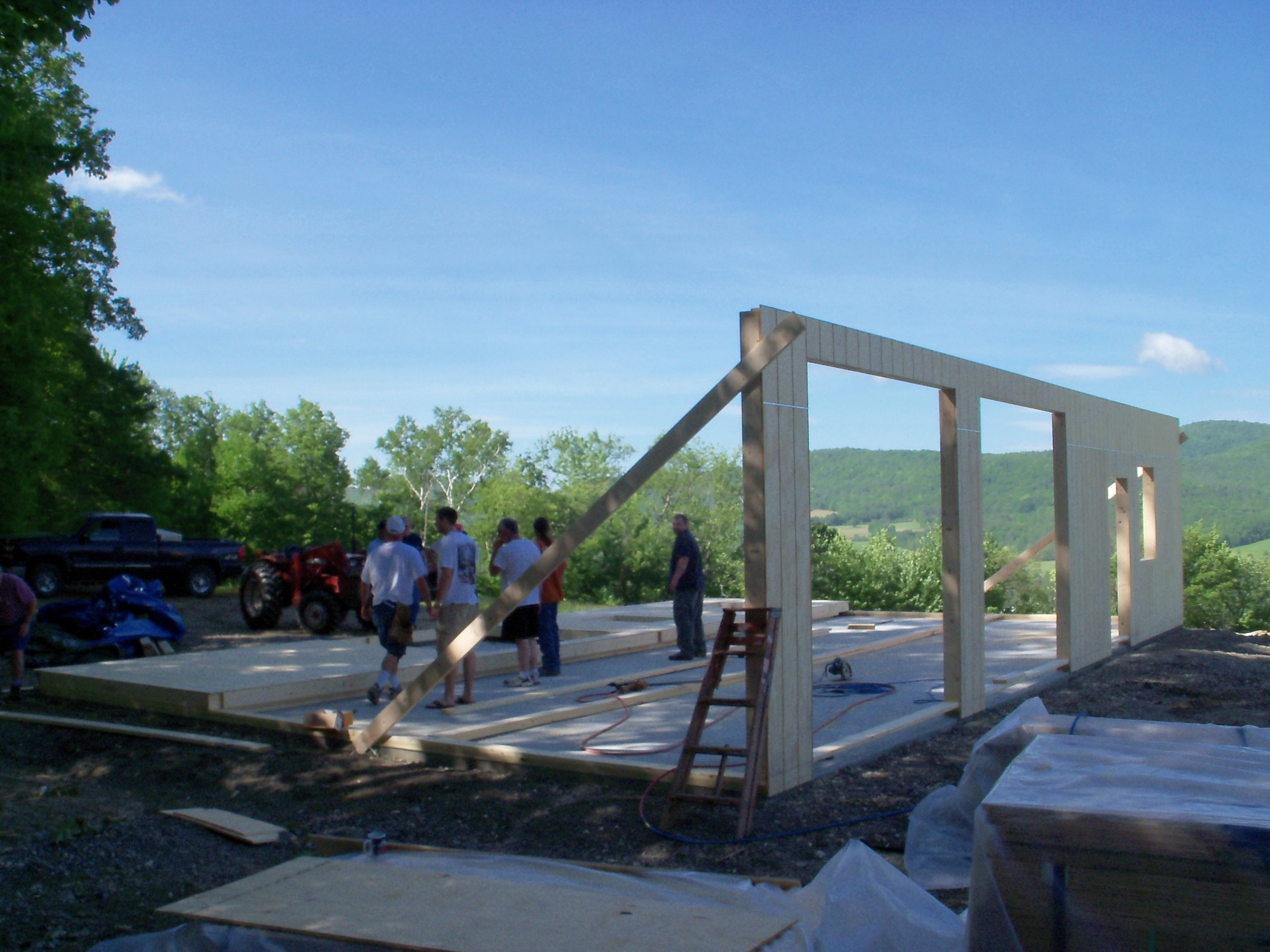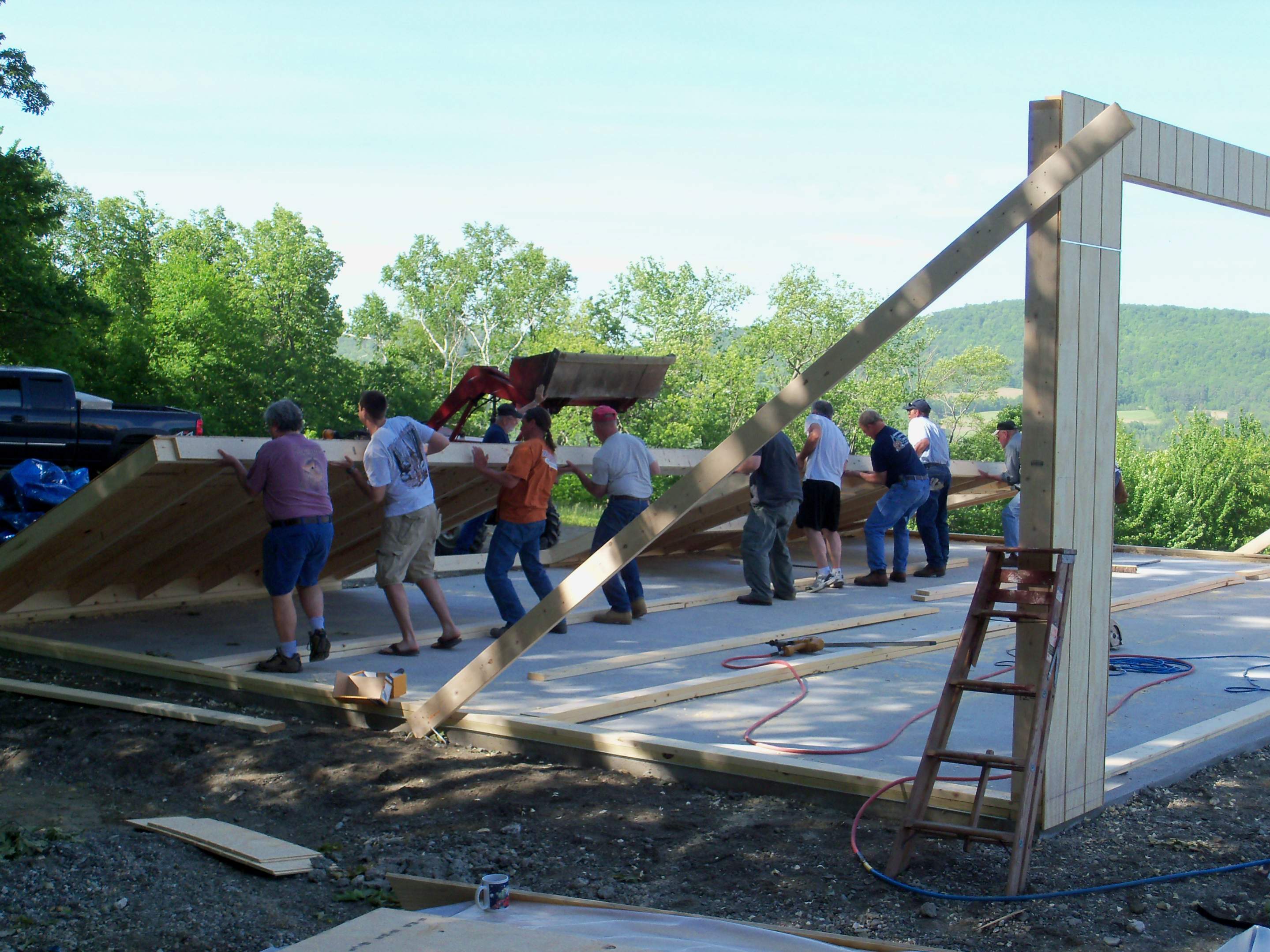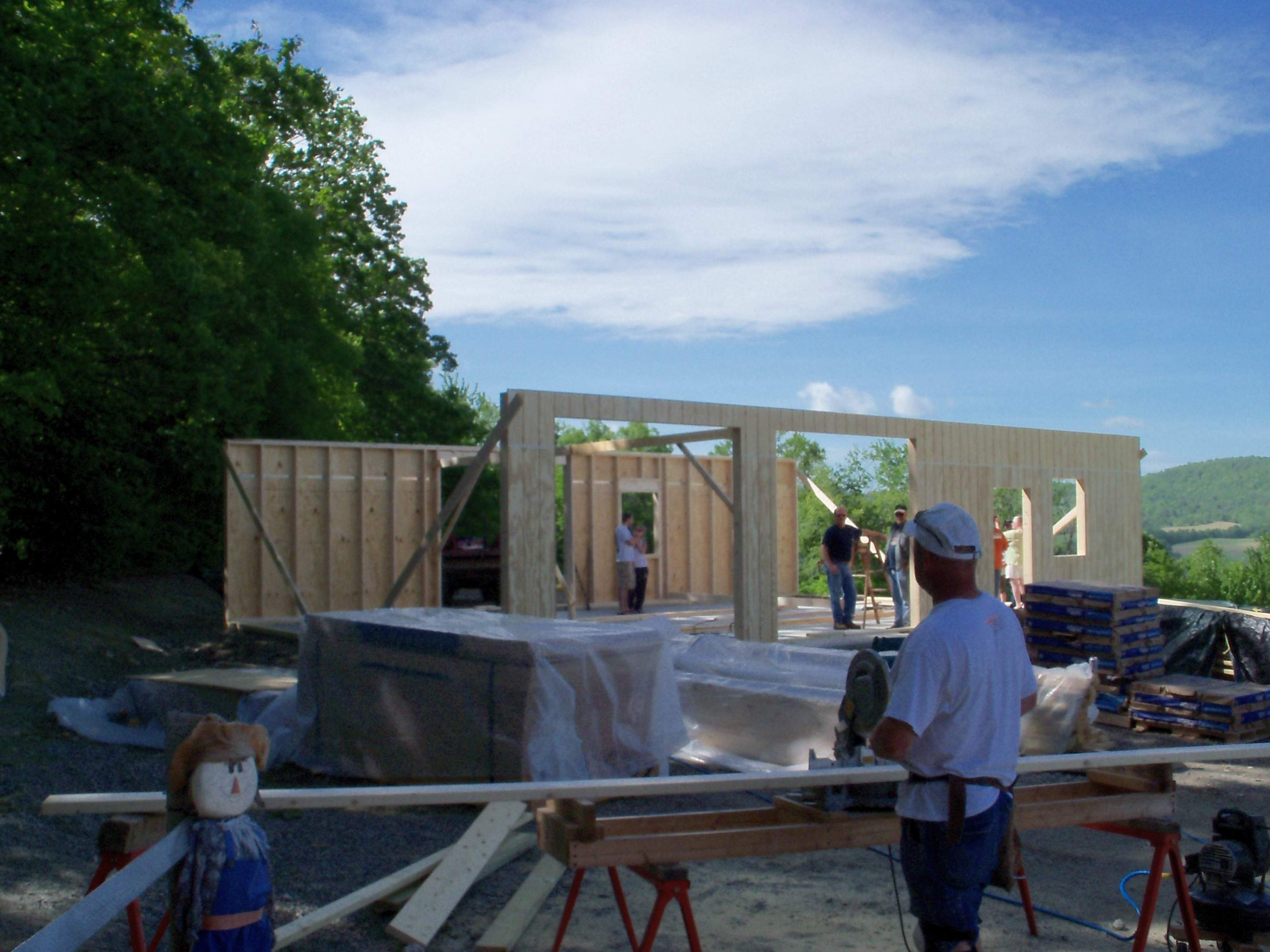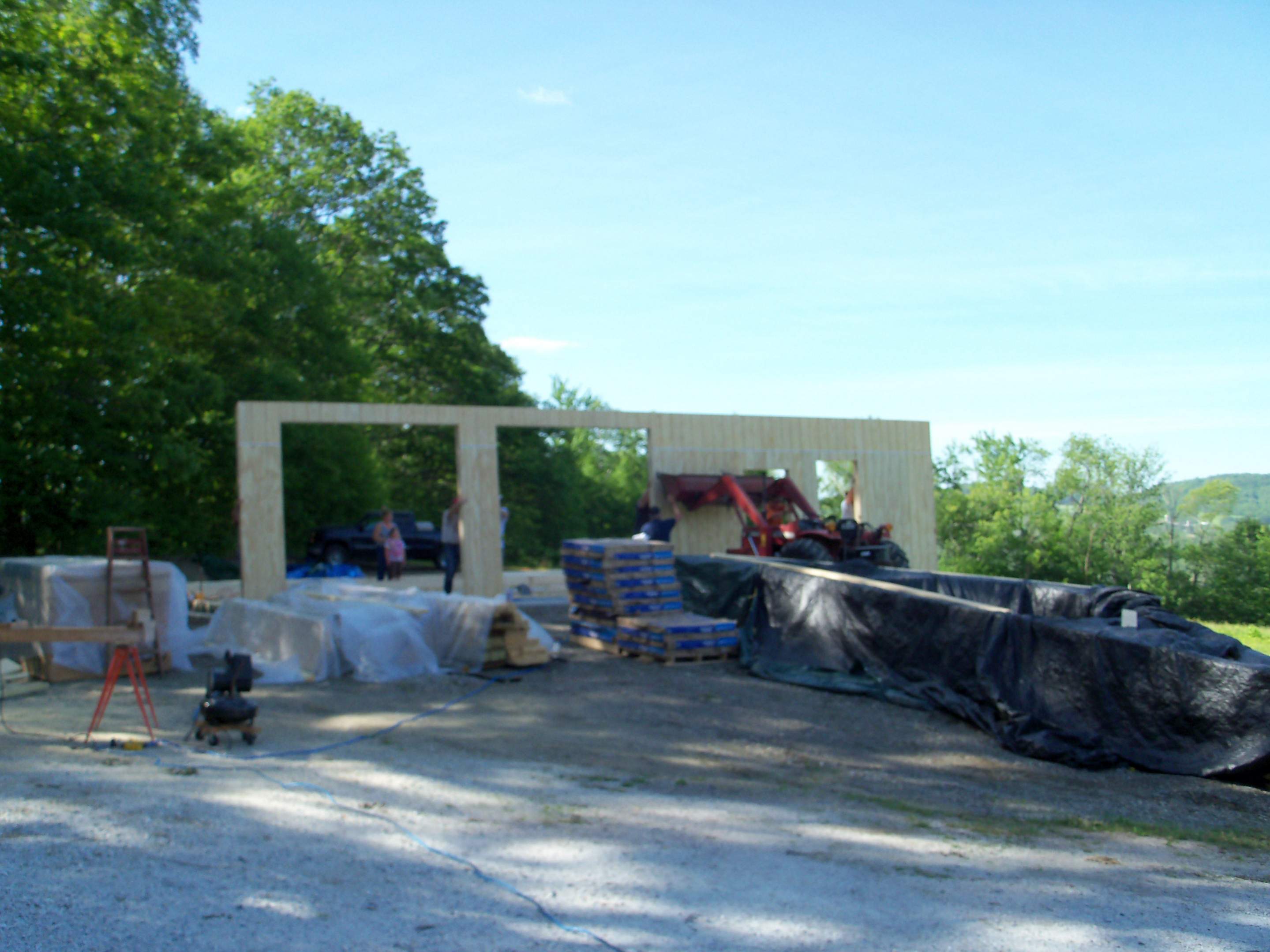 Here are some more pics from this past weekend, we rounded up a bunch of guys and got the 42' walls up, I didnt think we had that many guys in the area ! :confused:
