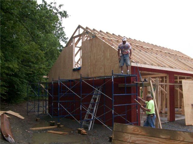 Scotty, I've never seen anyone put on stain before the entire structure is framed, but it does seem to make sense to do that. Your shop is looking very good and you're making great progress. I'm still very jealous.