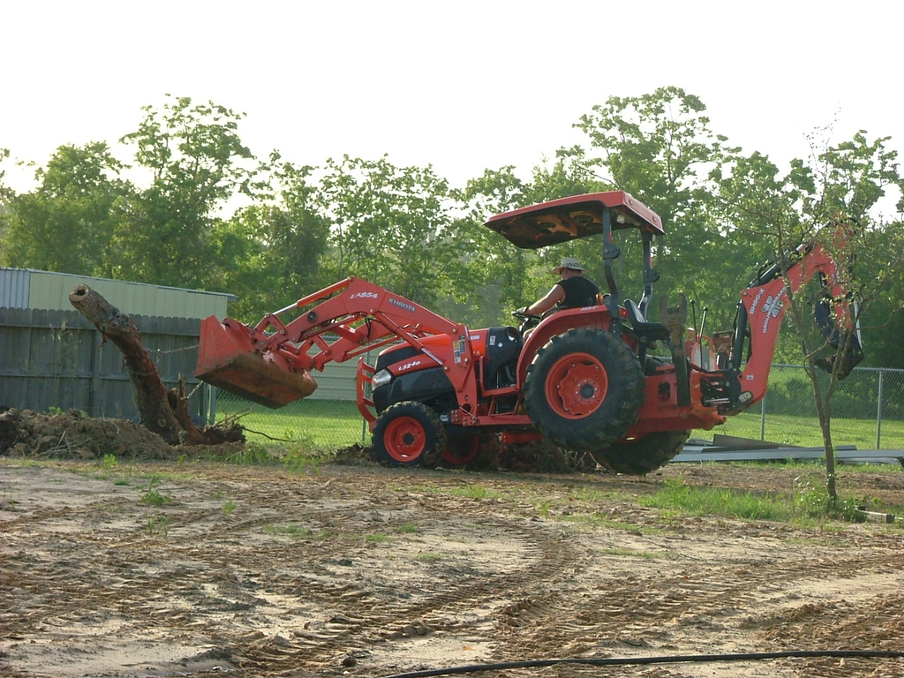 I had already severed all the roots around the tree, pushed it over from side to side but the FEL would not pull it out of the ground. I assumed the little tallow tree had a good sized tap root that I could not get to even with the ripper tooth.