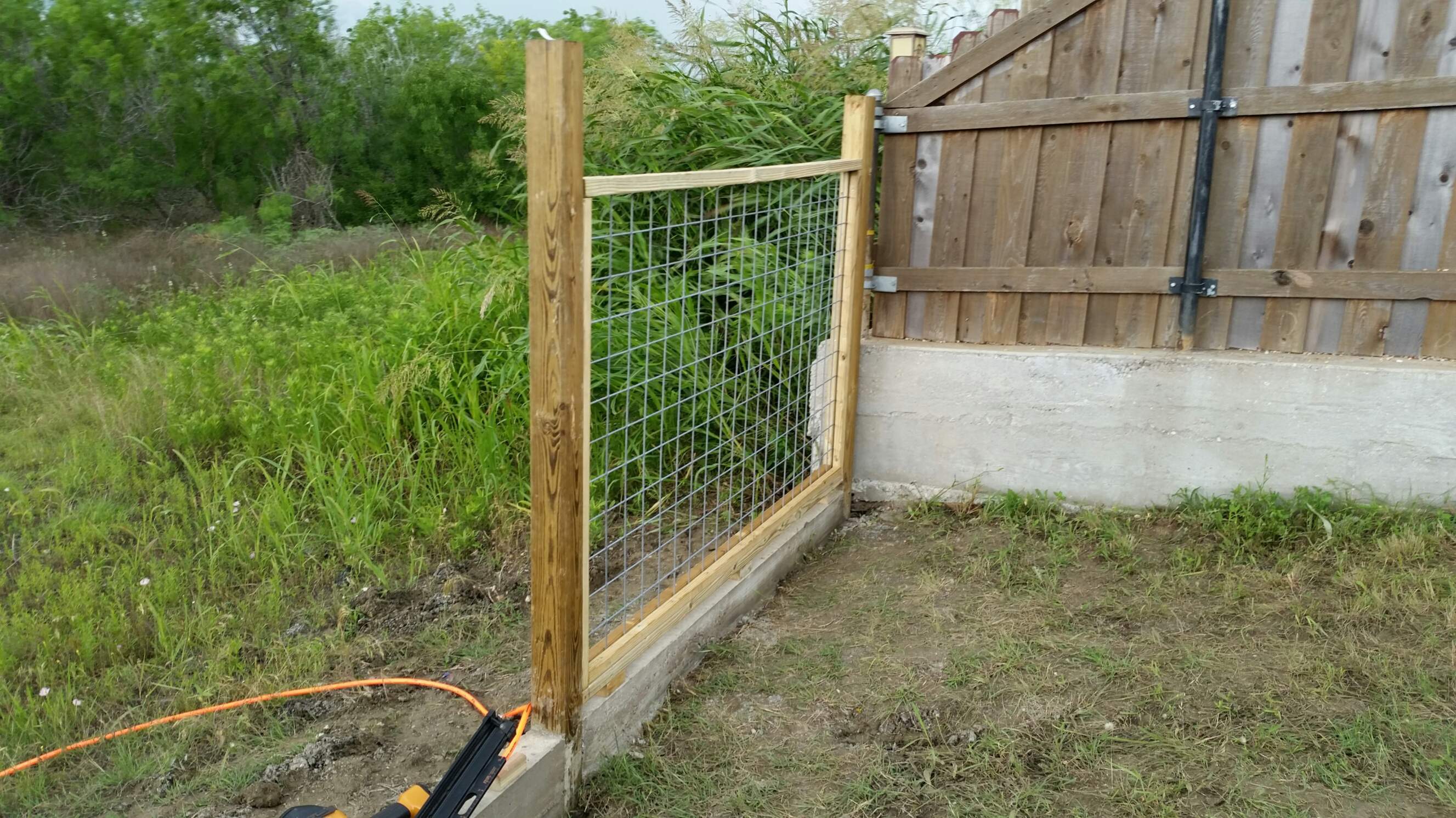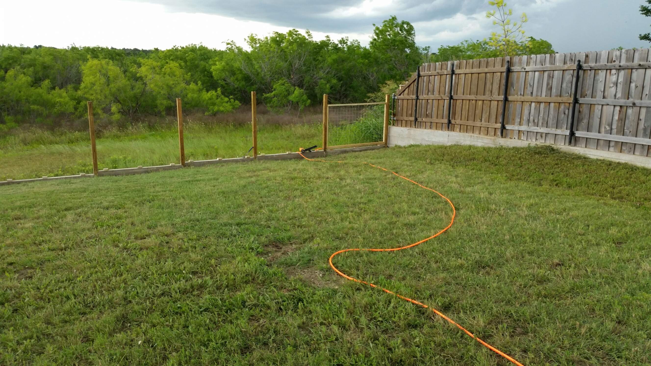 Between the mud sticking to my boot with Saturday's rains and working by myself, I was whipped. Yet, I did manage to get the second section panel finished. 5-23-15 Two Panels Boo's Fence.jpg
