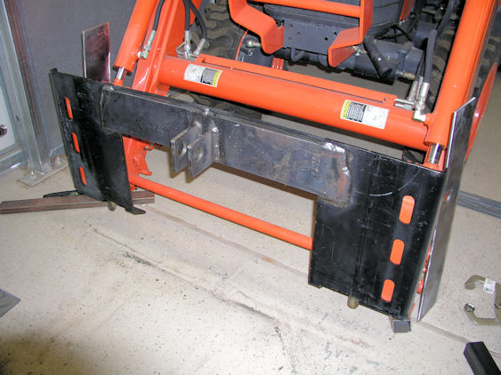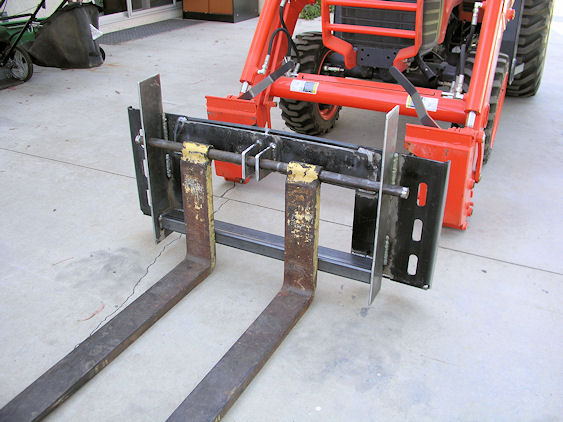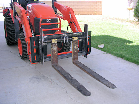 After suffering sticker shock while pricing QA pallet fork attachments for my Kubota B26, I decided to muster my Hobart and Thermal Dynamics machines. I bought the QA plate on ebay ("ezfab", $100 incl shipping), used 42" shaft mounted class II forks from local forklift boneyard ($50), about $20 in steel (I already had a couple sheets of 1/4" plate).