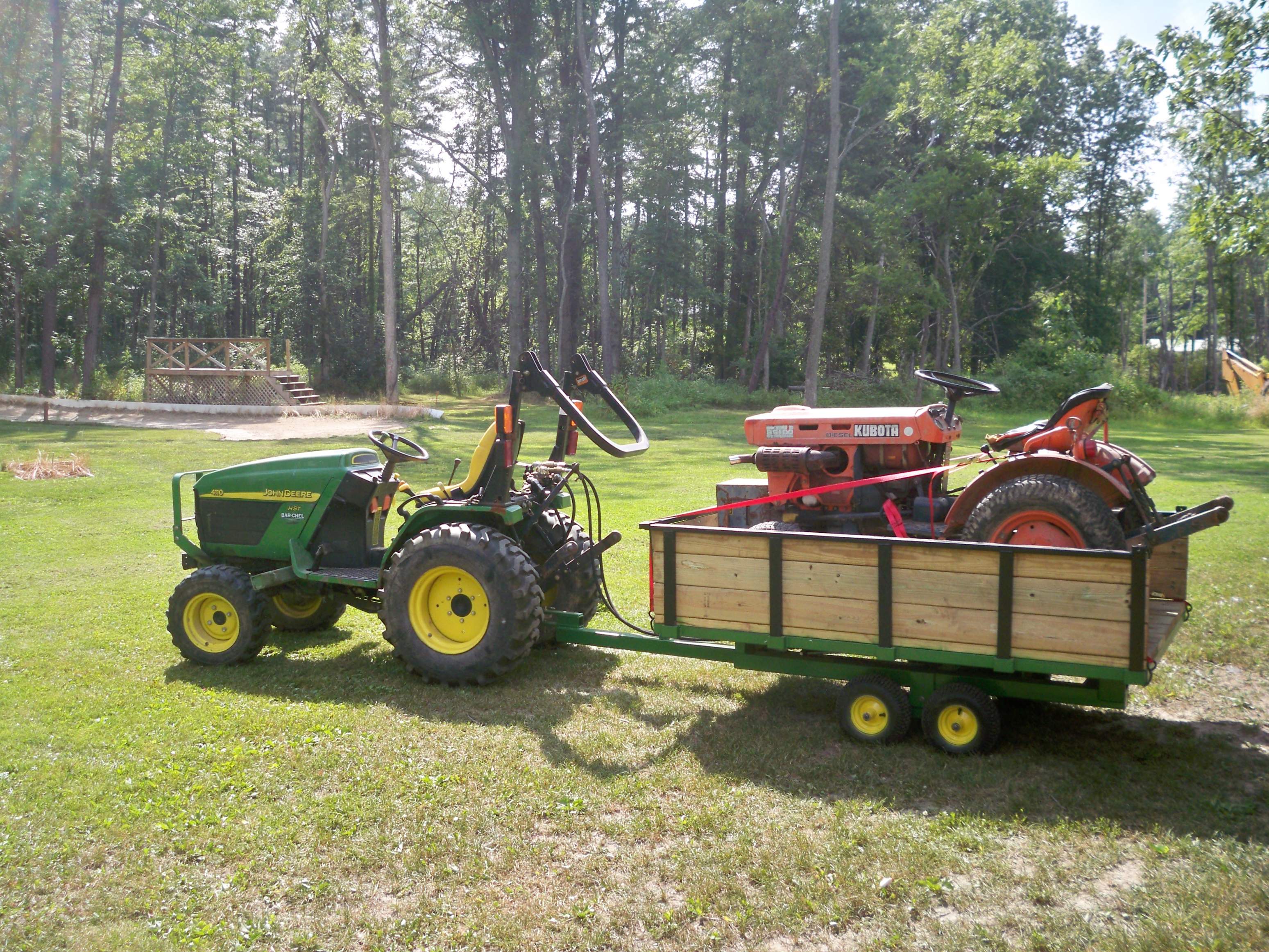 I was following this thread because I am looking to buy or make something I can use both behind my Kioti CS2410 and pull it on the road for picking up stuff. So while I want it small, I also need the tires and axles road legal.