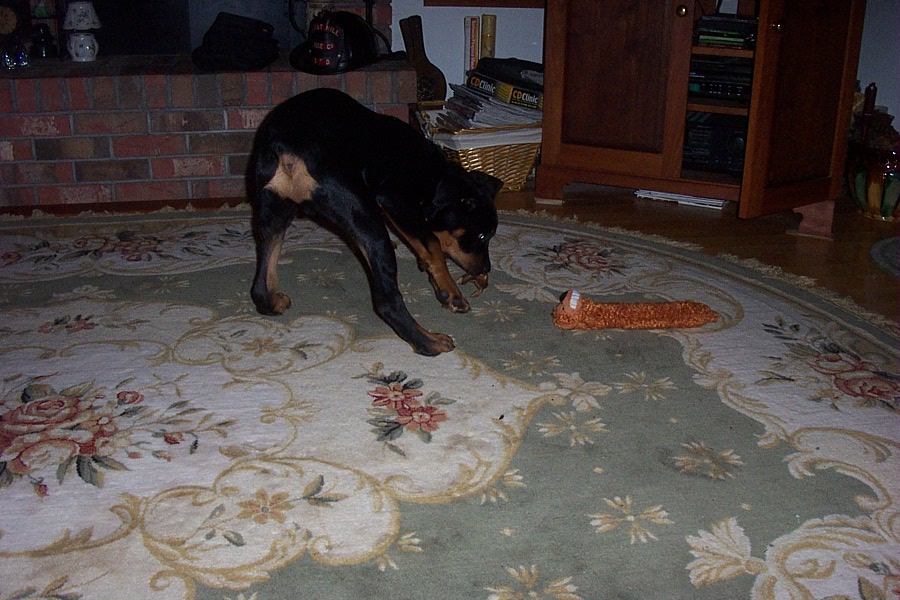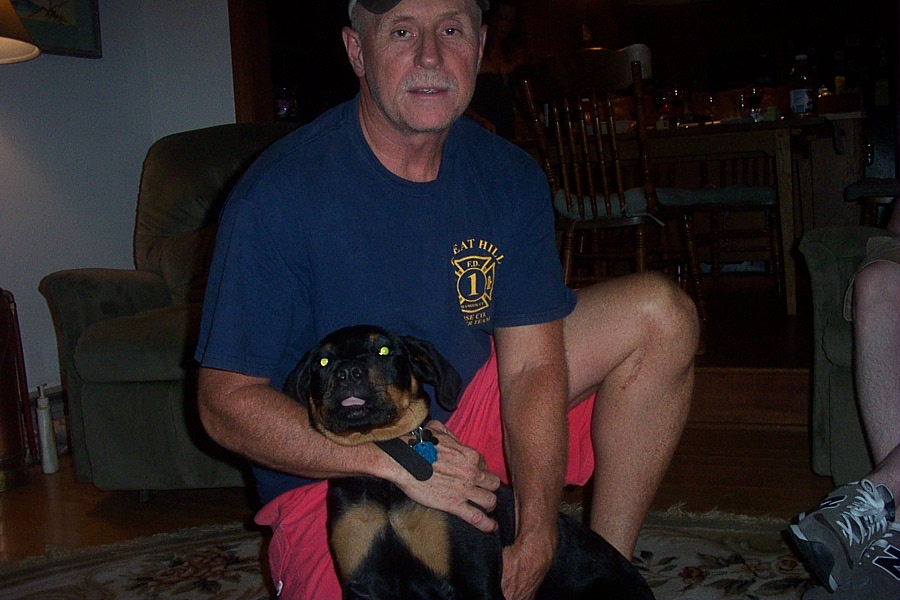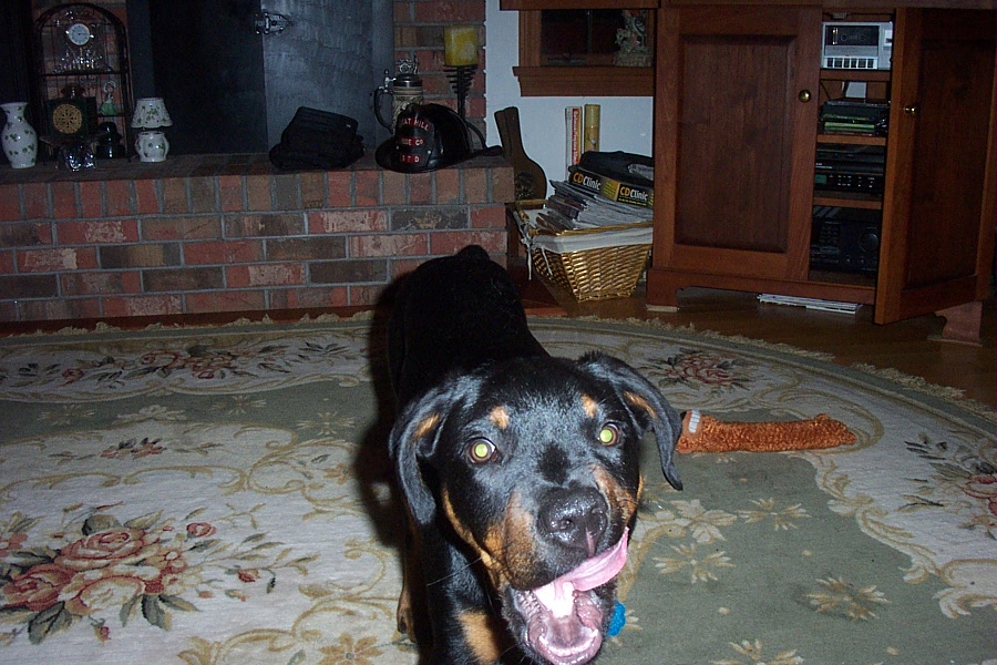 That's a nice lookin pup you got! He's sure gettin big. What's his name?