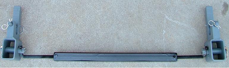 A. We offer a spreader bar; that is basically a large turnbuckle. It connects to each EZ-HITCH and adjusts the arms to the proper distance needed for each implement, and then keeps the arms at that distance. Using the spreader bar will also allow the user to bump the implements into place if you fail to line the tractor up perfectly with it.
