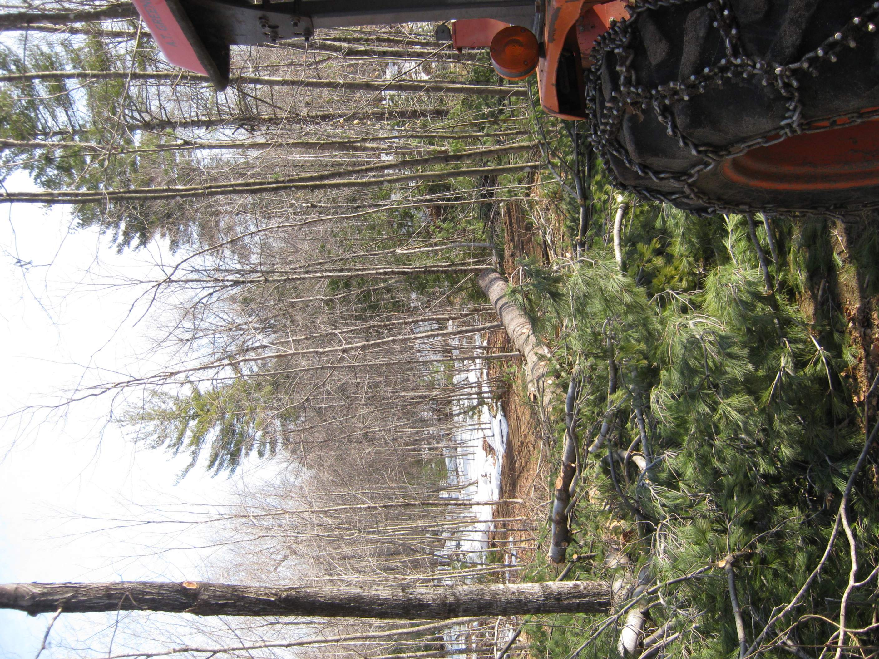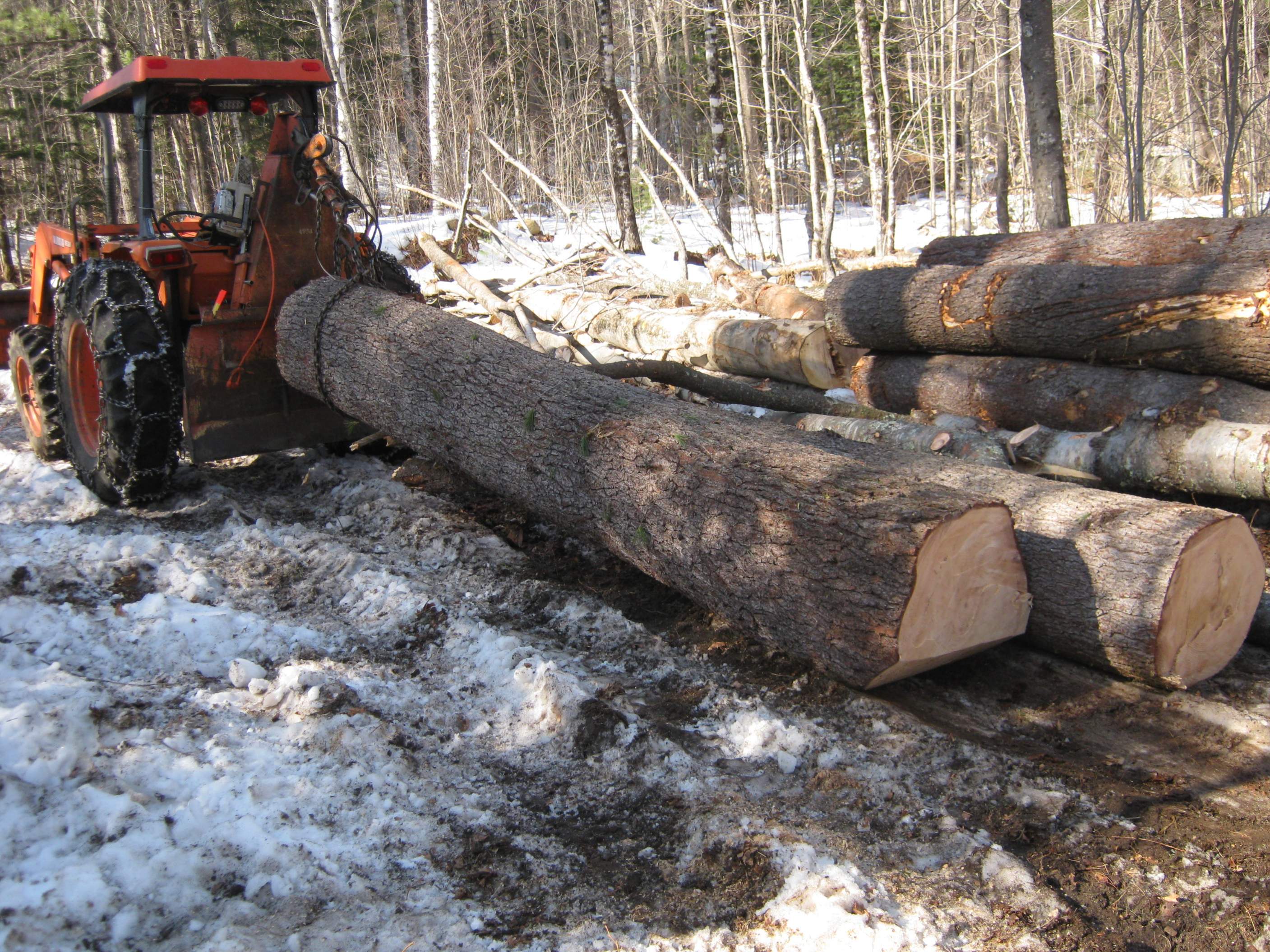 Nice pine:cool:. Sorta looks like the western white pine around here. Our roads are posted here too. Drying out wickedly quick though, with the lack of spring rain. With those tryggs, you are in good shape for slop navigation. They are the chain of choice for extreme duty logging around here. I got 1300 hours out of a set on the JD 648-G III, not bad for a 48,000 lb. machine that roles around on rock, stumps and mud everyday while pulling two and a half ton of trees behind its-self:D