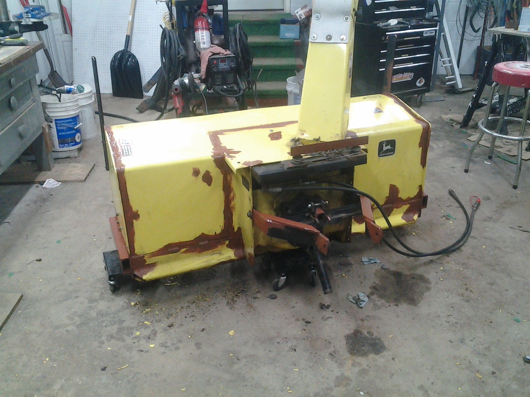 I thought I would share my work and ask for suggestions as I get my new to me 4300 up in good operating condition. It was owned by a commercial snow removal and landscape company who traded it in on a bobcat. I bought it @ 1500hrs with a 430 loader, 26 broom, 59" blower, 72" deck, and curtis hard cab. Knowing that most everything was in good shape with the exception that the cab was rough and needed work, they made me a deal. The rusty cab really made it look dilapidated and helped in bargaining and I knew I could fix it. Other things I need to do yet is replace all the hard lines from the loader valve to the disconnects, put new decals in the hood, and figure out what people are doing to protect their trans cooler from battery spray. Everything looks good on mine so I'm not sure what to do to keep it that way.