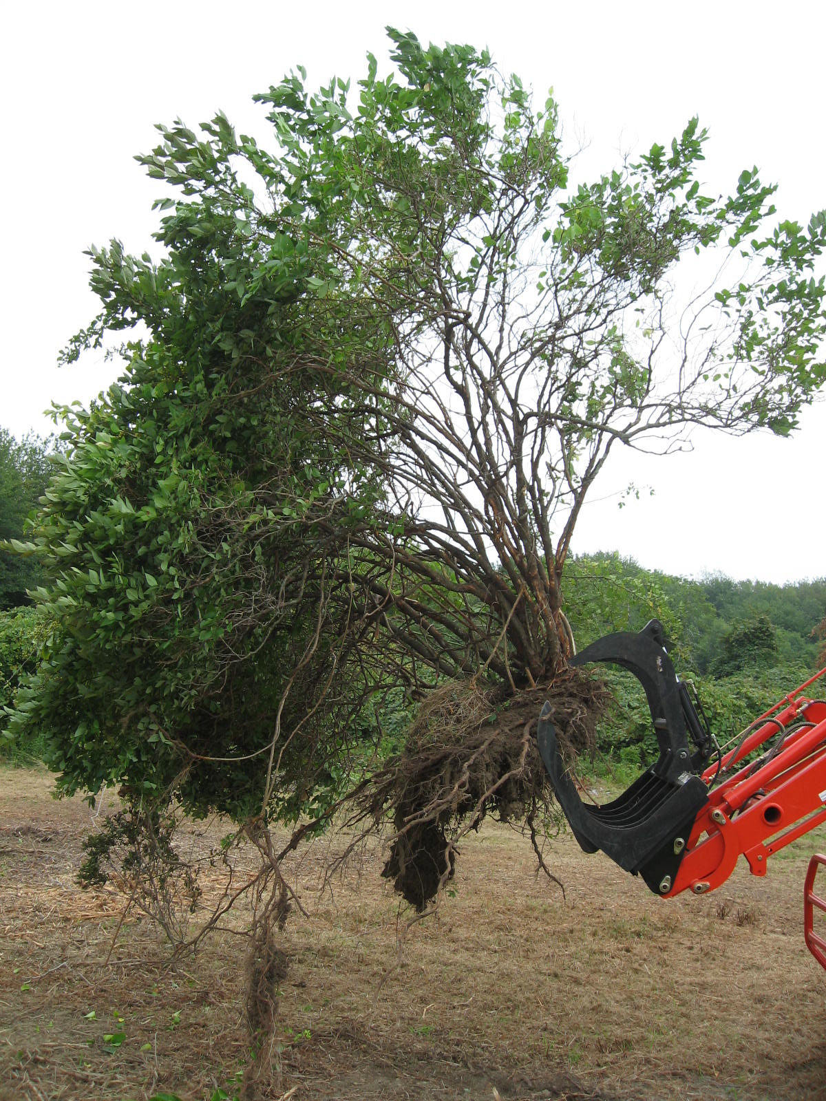 I only showed the Caroni flail to give you an idea of how clean the mulching is compared to what you get with a bush hog. I agree that the Caroni couldn't take down those 3"+ size saplings. Not sure you really would need a specialty forest device though. Some of the heavier duty flails used by highway departments are big enough to be set up for saplings. Anything you can push over with your grapple and just drive over should be chewed up pretty efficiently by a solid heavy duty flail.