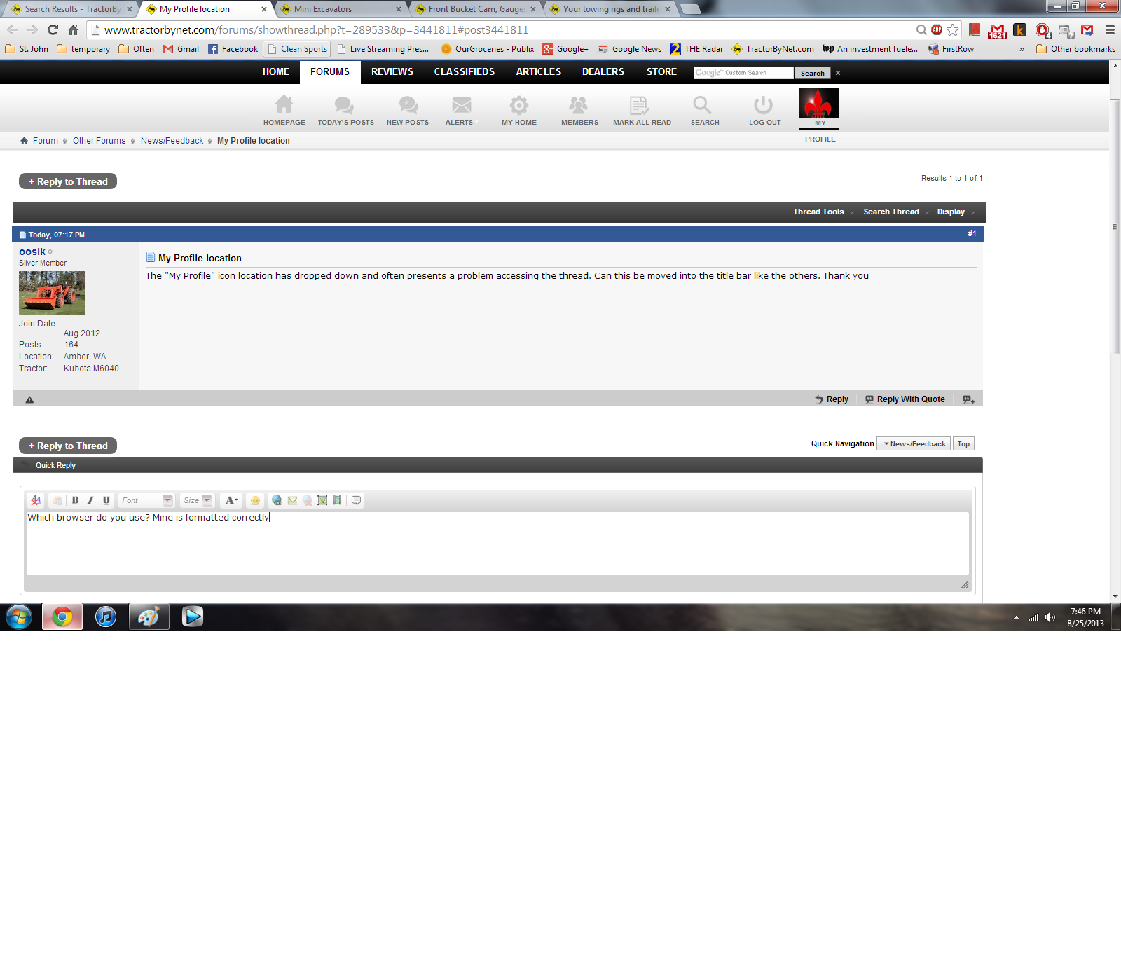 I have a Mac so I'm using Safari. I just had an idea. I also have Mozilla FireFox web browser. I fired it up and went to TBN. Lo 'n behold - all is well on that browser. Hmmmmm - I have an easy answer - I just use Mozilla FireFox to access TBN. Problem solved. Thanks for the rapid response. Oosik