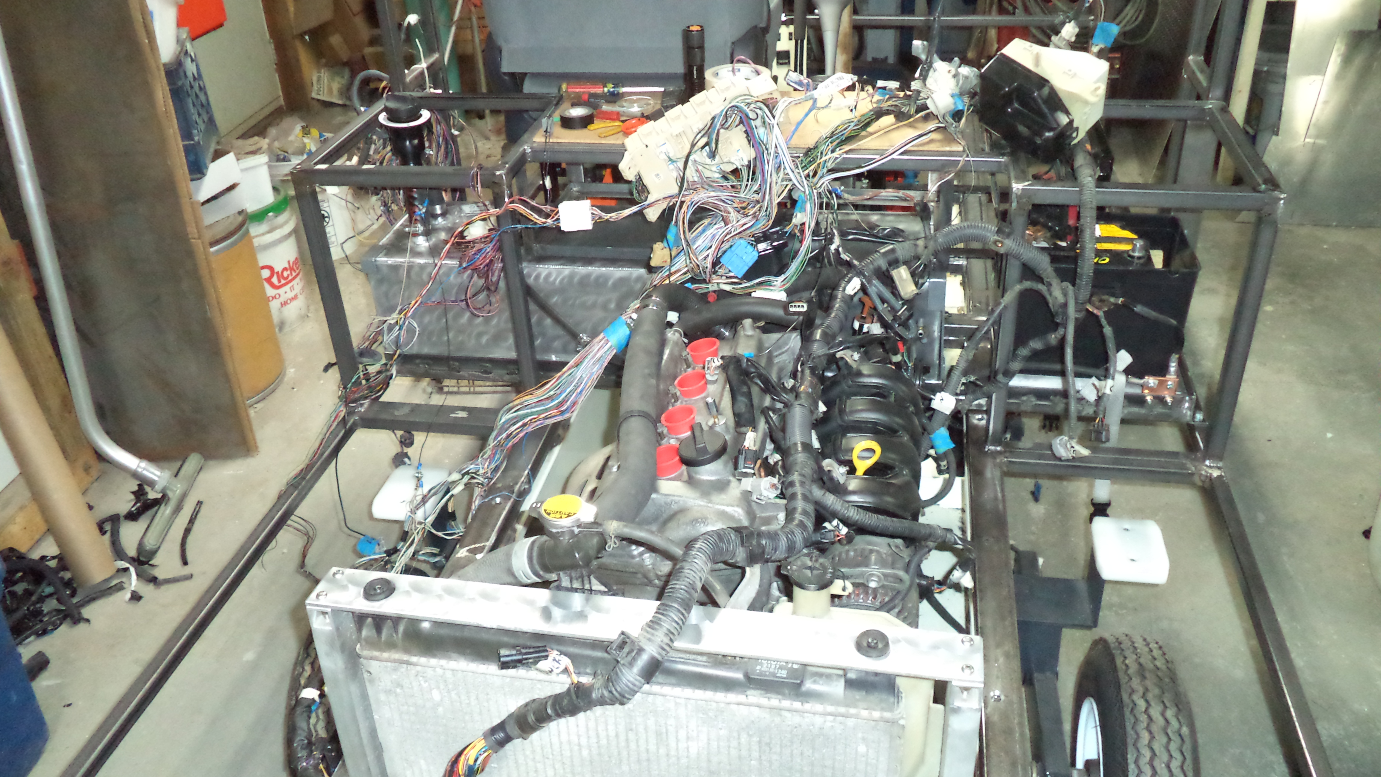 I spent the last couple of days connecting the original Echo wiring harness back up to the engine, fuel pump and battery to see if I could get it to turn over. Yes, it did, so I guess it should start (assuming I reassembled it properly) when I push it outside once the weather gets a bit warmer. I'll start dissecting the harness to remove superfluous wiring and keep working on the cab frame in the meantime. I wish I could figure out how to remove the sockets from the connector housings. I bought a special toolkit off EBay that should help with that. Does anyone have a trick on how to do it?