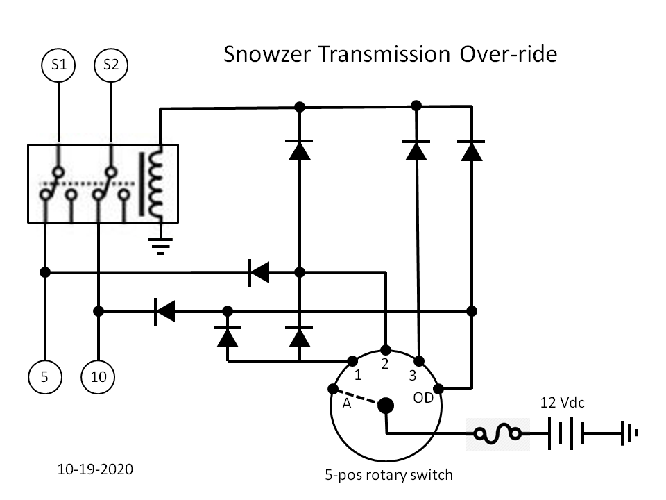 The Snowzer sideshow continues.. After a few fits and starts I finally got the "Select-a-speed" wiring installed and tested. In summary, this lets me specify which gear will be used when the shifter is moved to Drive. I test drove it today and worked just fine. Here's the wiring schematic and a few images of it. Yes, I plan to make a nicer dash legend. :)