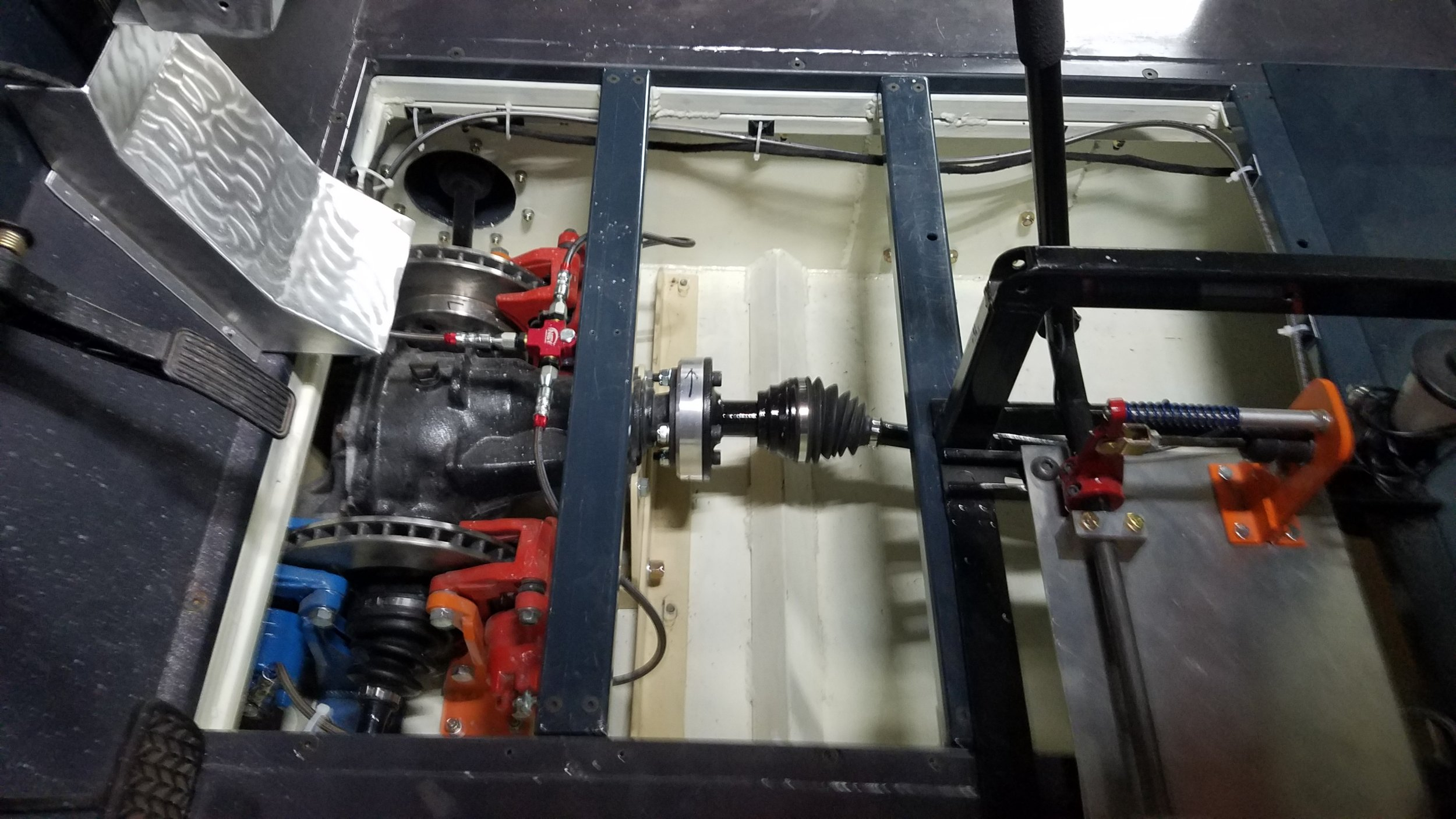 Not really - the rotors I use do not have the parking brake drum surfaces. The red calipers are the service brakes. Room down there is very limited with the CV joints on the drive axles. I decided early on to skip using a parking brake and rely on the park feature of the automatic transmission.