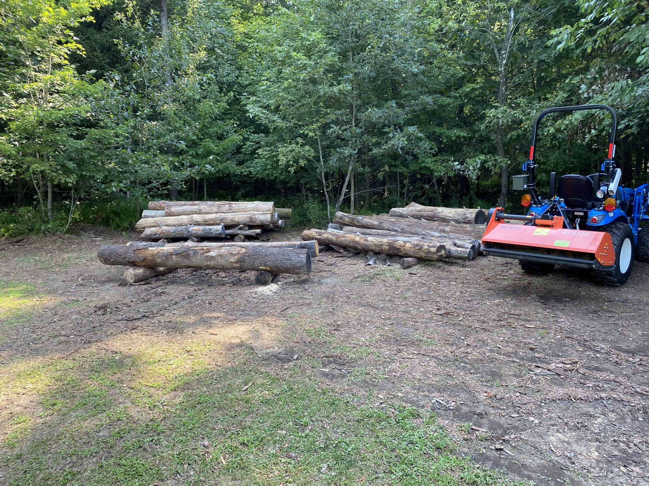 Recently cut some walking trails through our woods that go to the "Leftover Lodge." I needed to cut up many dead and downed trees. The piranha tooth bar made quick work of everything under 3" in diameter. That Piranha bar makes a loader bucket 100 times more useful. The Betstco 48" flail mower turned everything sticking up into a nice mulch and left a nice 48" manicured path. The Dewalt 12" electric saw was super handy for cutting logs up to 10" in diameter. The Stihl 20" took care of the larger logs. Even managed to make a couple log benches resting spots.