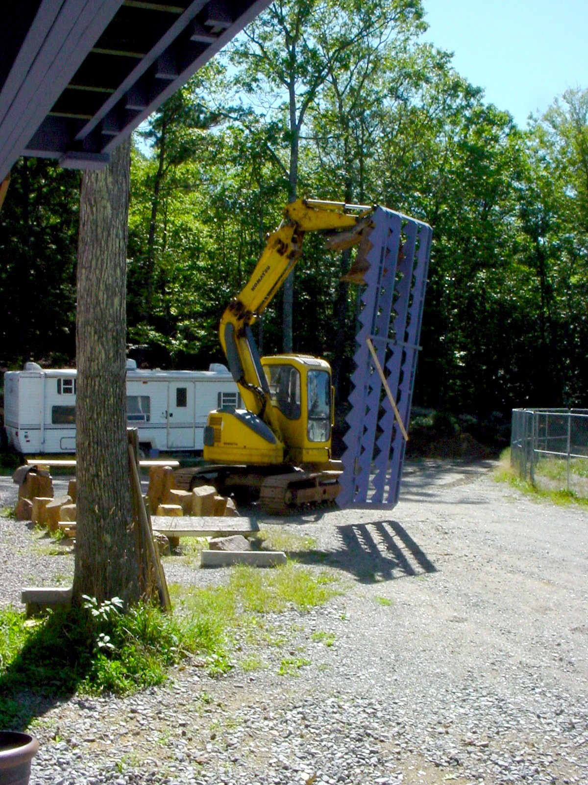 I made a pattern out of strapping so to know where to dig the holes for the foundation blocks to set the gazebo. My wife is going to cry about her lawn when I finally use the excavator to pick up carry and set the Gazebo. A heavy lift helicopter is my other option, but grass seed & loom cost less.
