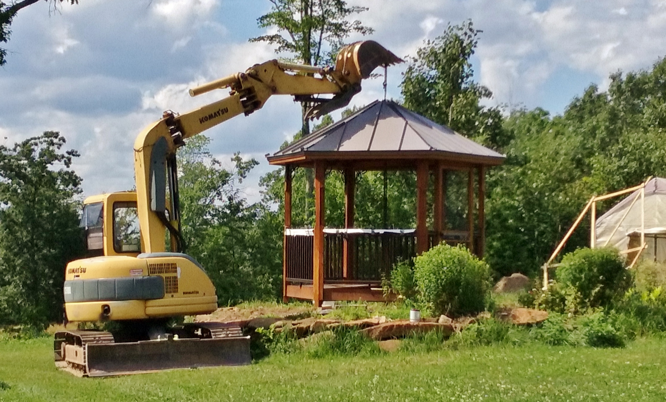 The main reason we went with solar panels on the barn roof vs. the more ideal location of setting up the panels on post was the freaking ledge we have all over the place. The farm next to us is called Ledge wood, Ours is called Breezy Ridge. (Not very original, but good descriptions) Running water line or wire underground means dynamite or one big mean Ditch Witch, excavator hammer, etc. So my wife will do some solar stuff for lights, etc in the Gazebo.