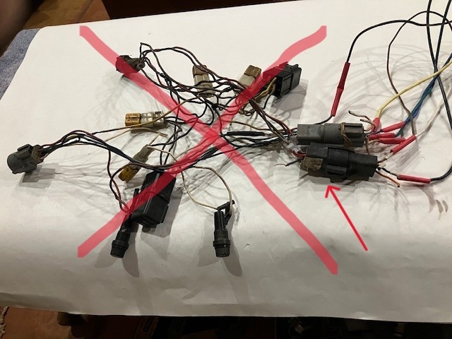 When you say you have fuses and such, are there yellow diodes in that mess? if so, you have the corrected version for the early C models where the computer did not have protection built into the circuitry, so Ford had to update it with a short harness of fuses and diodes. Since you are not using the computer, I think you can eliminate most of the mess. Take a picture of the harnesses with the black and gray connectors laid out to where it can be seen a little clearer.