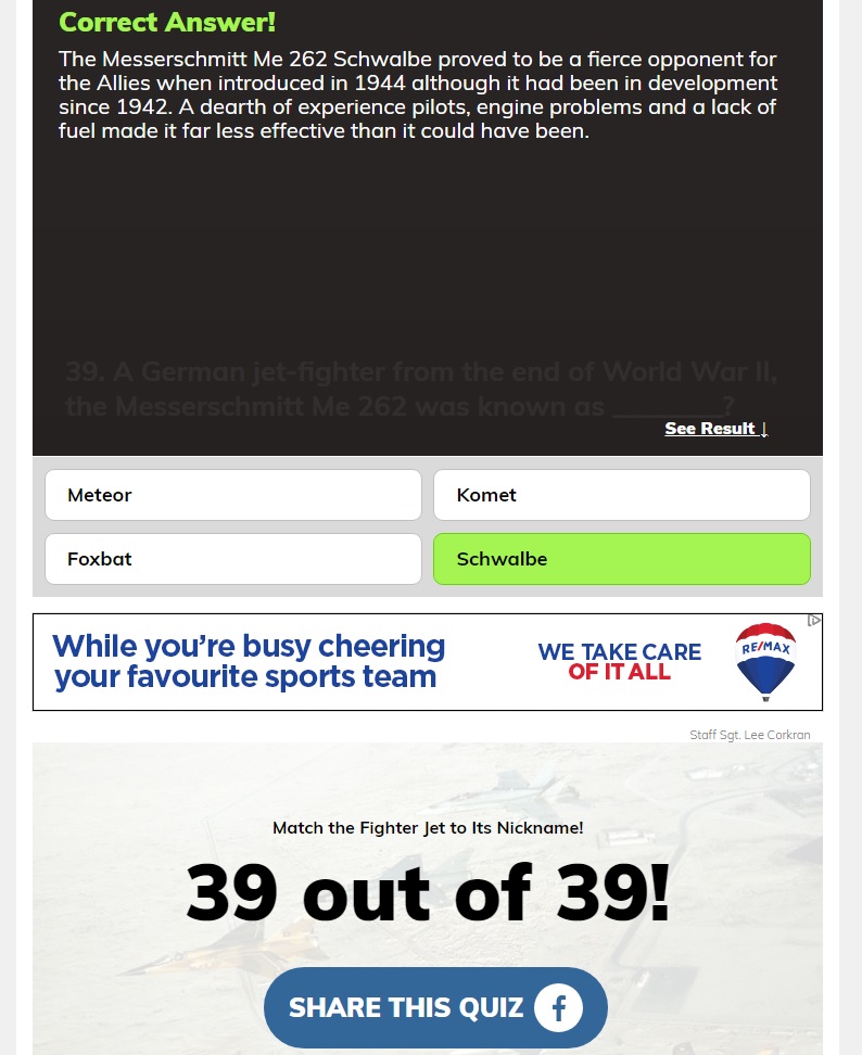 I missed 2. 37 out of 39. I missed a couple of the Russki aircraft.