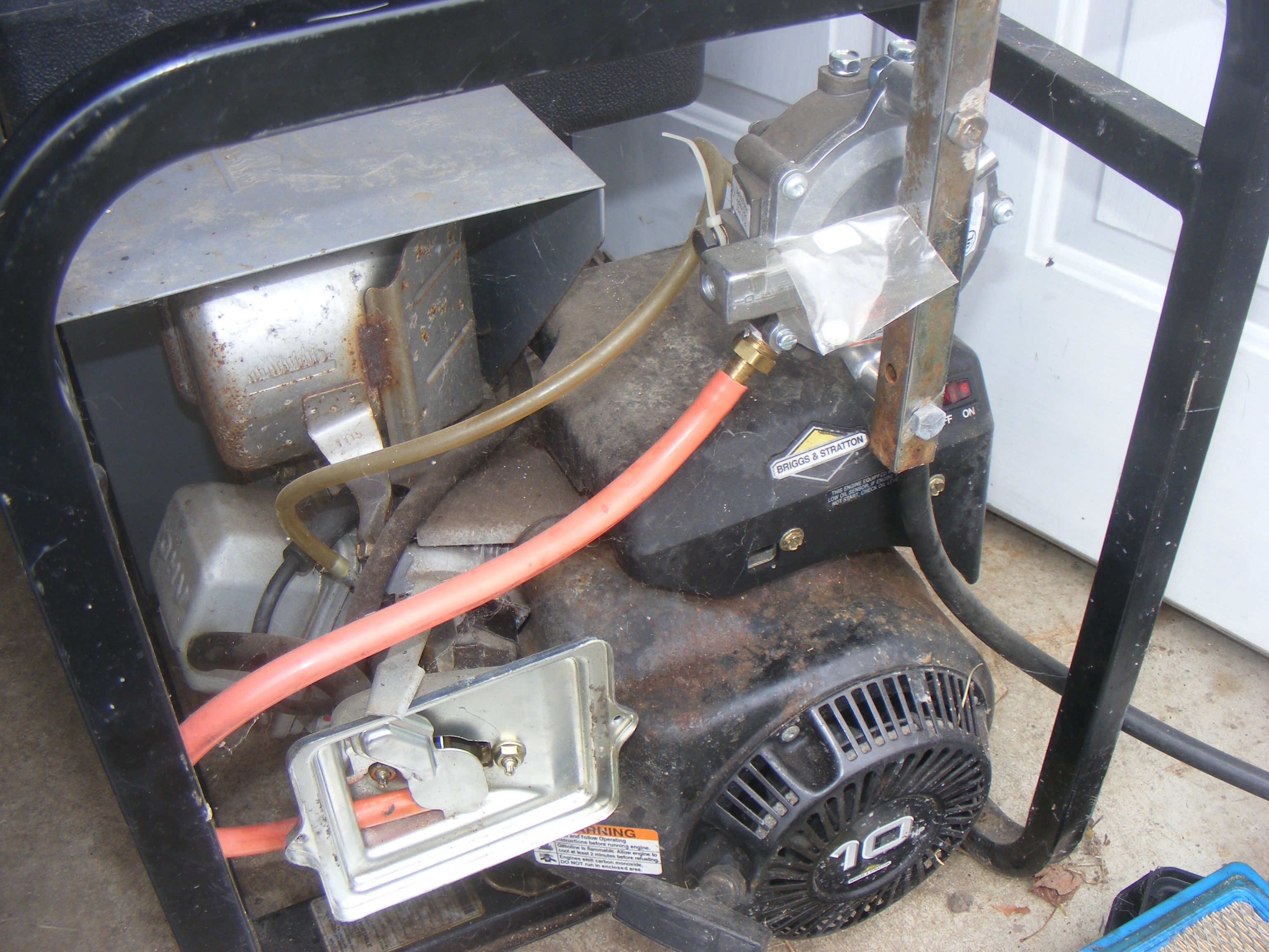 No, I'm leaving the carburetor in place so it can also run on gasoline if need be. I'm proposing drilling and tapping the manifold between the carb and the engine and installing a barbed fitting to attach the gas hose.